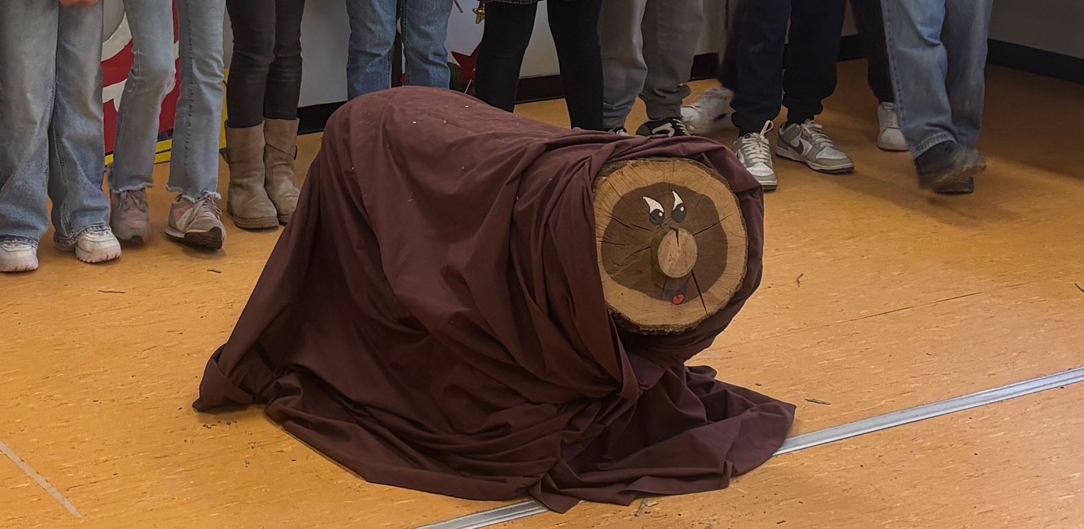 Després d’aprendre i practicar el poema de Nadal, arriba el dia de fer cagar el tió. Cada grup classe recita el seu poema i “caga tió!”