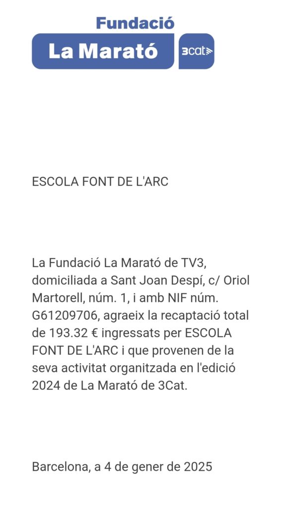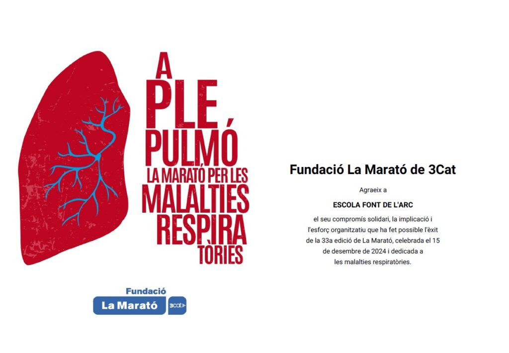El passat 20 de desembre, l’alumnat de l’Escola Font de l’Arc va col·laborar en la recaptació de diners per La Marató TV3, aquest any destinat a les malalties respiratòries.