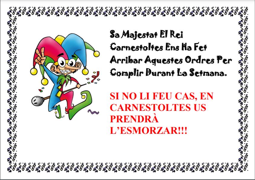Compartim amb vosaltres l’activitat que vam fer per a celebrar dijous gras. Abans de berenar, a l’àrea de pícnic de la Font de l’Arc, vam ballar davant de tota l’escola les danses de Carnaval que havíem estat preparant a classe de música els dies anteriors. Podeu veure un petit recull de fotografies i vídeos aquí.