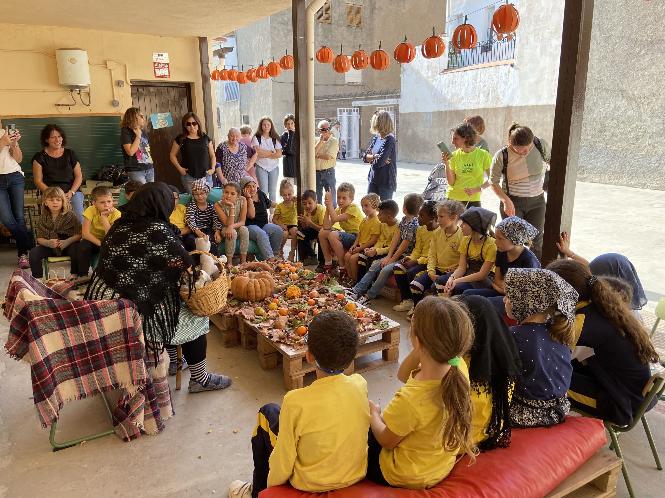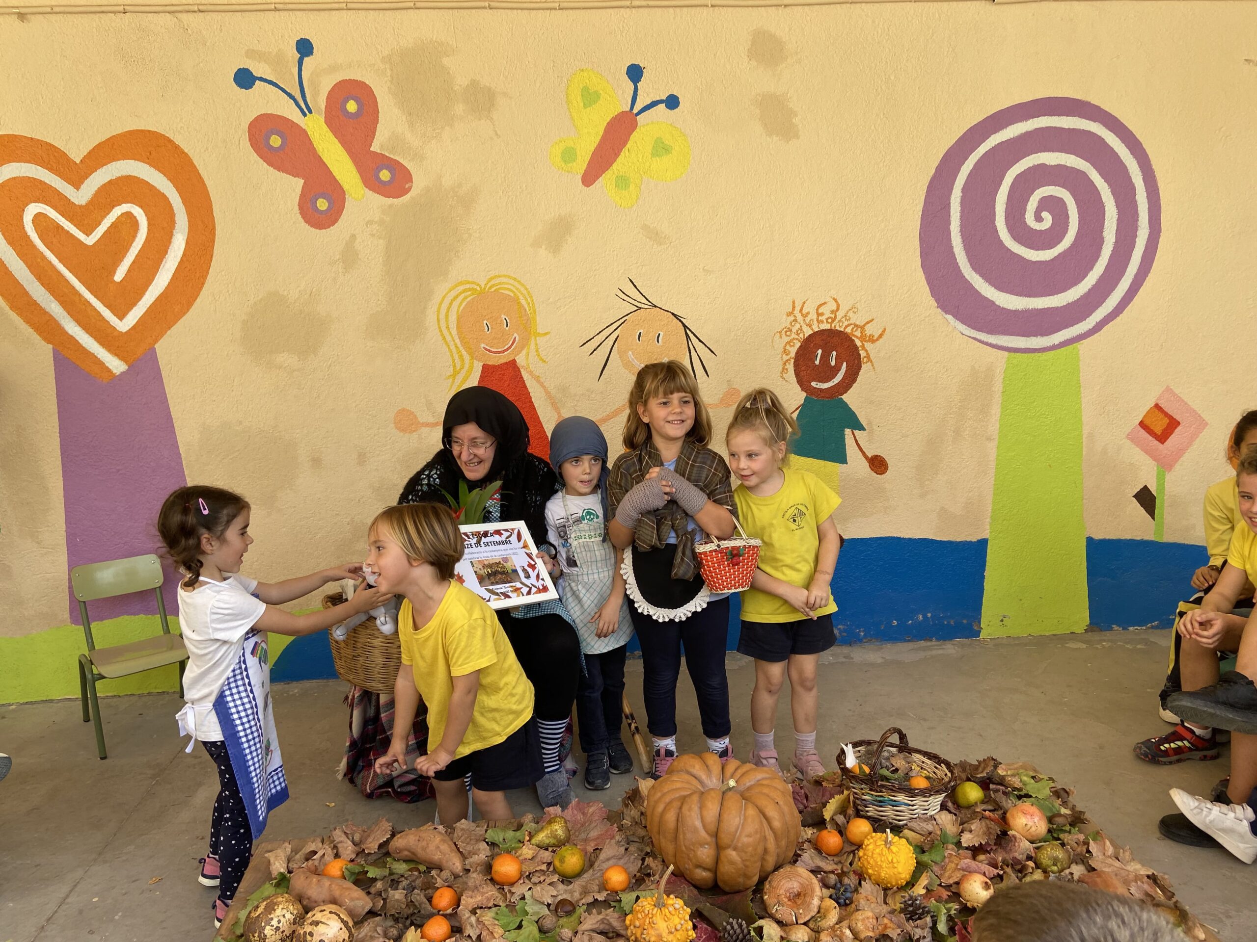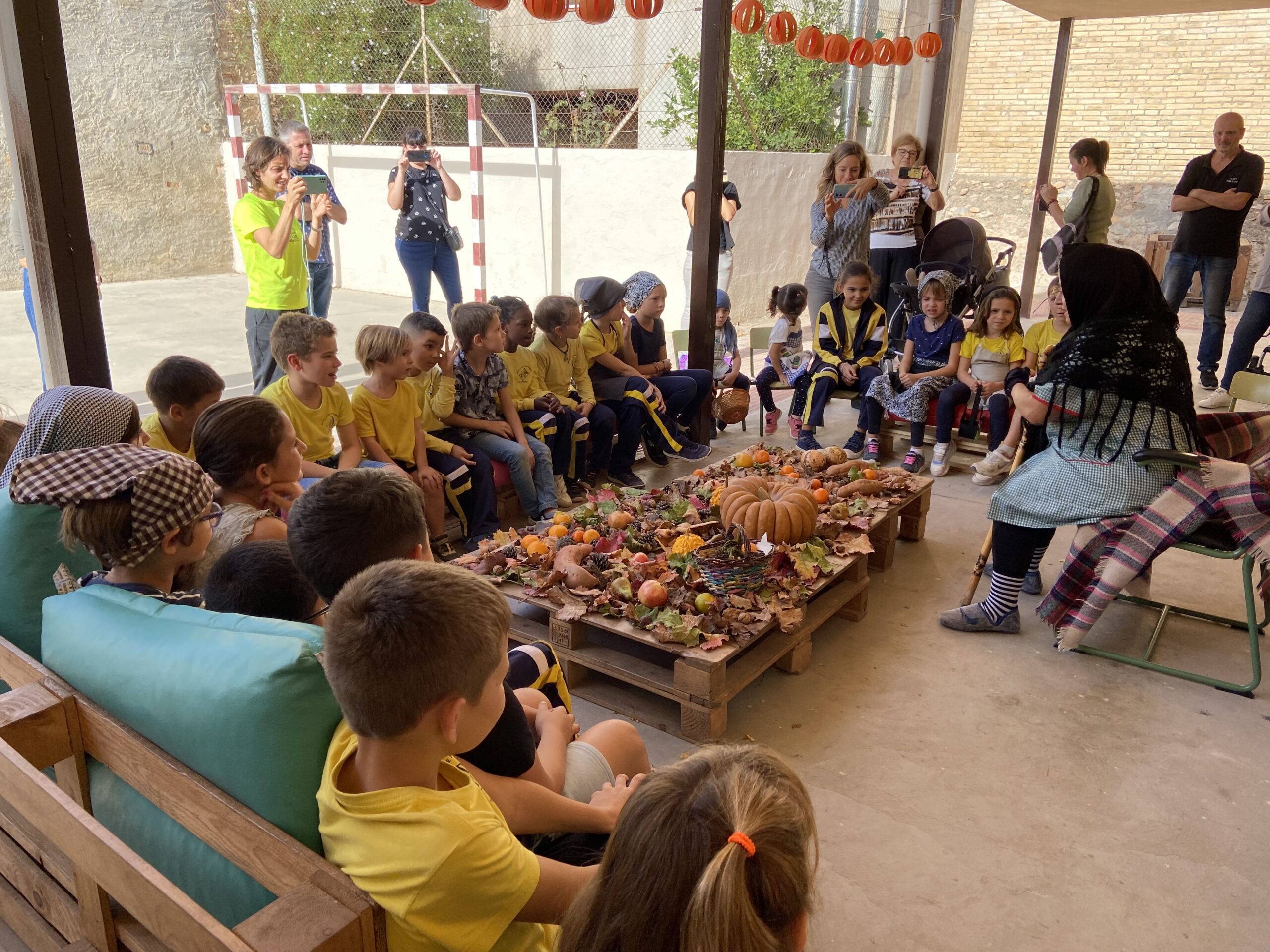 El divendres 28 d’octubre vam realitzar la celebració de la castanyada. Al matí amb tots els elements de la tardor que havíem anat portant a l’escola vam decorar el porxo. A més a més, també vam practicar les cançons i els poemes que a la tarda havíem de recitar a la castanyera.Quan va arribar la castanyera li vam donar la benvinguda i vam seure al seu voltant per escoltar la història que ens havia de contar. Després per saber una mica més del seu dia a dia, li vam fer una sèrie de preguntes i també vam cantar les cançons i recitar els poemes. Finalment, vam berenar coca, panellets i xocolata.