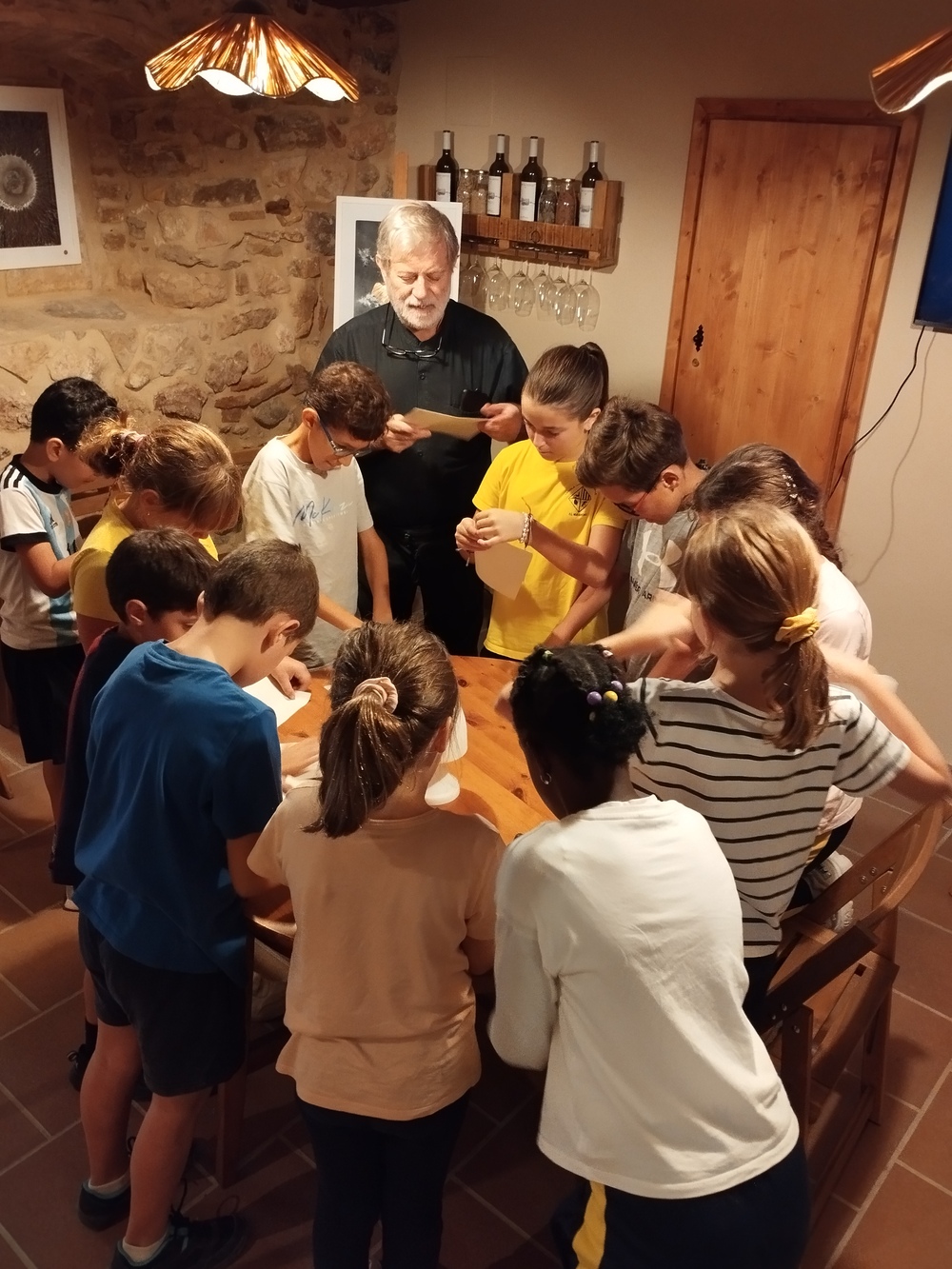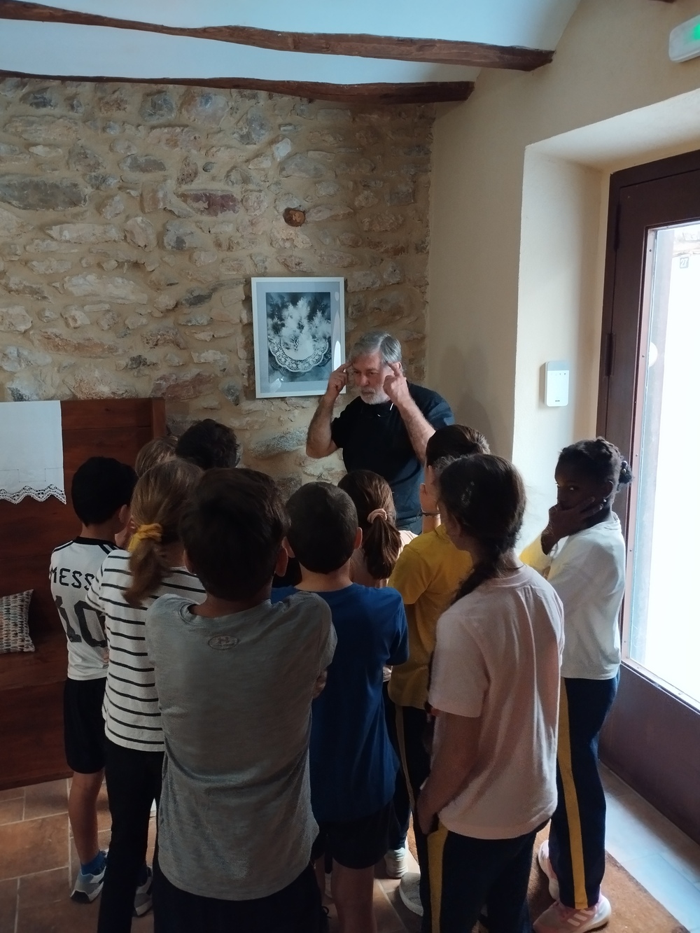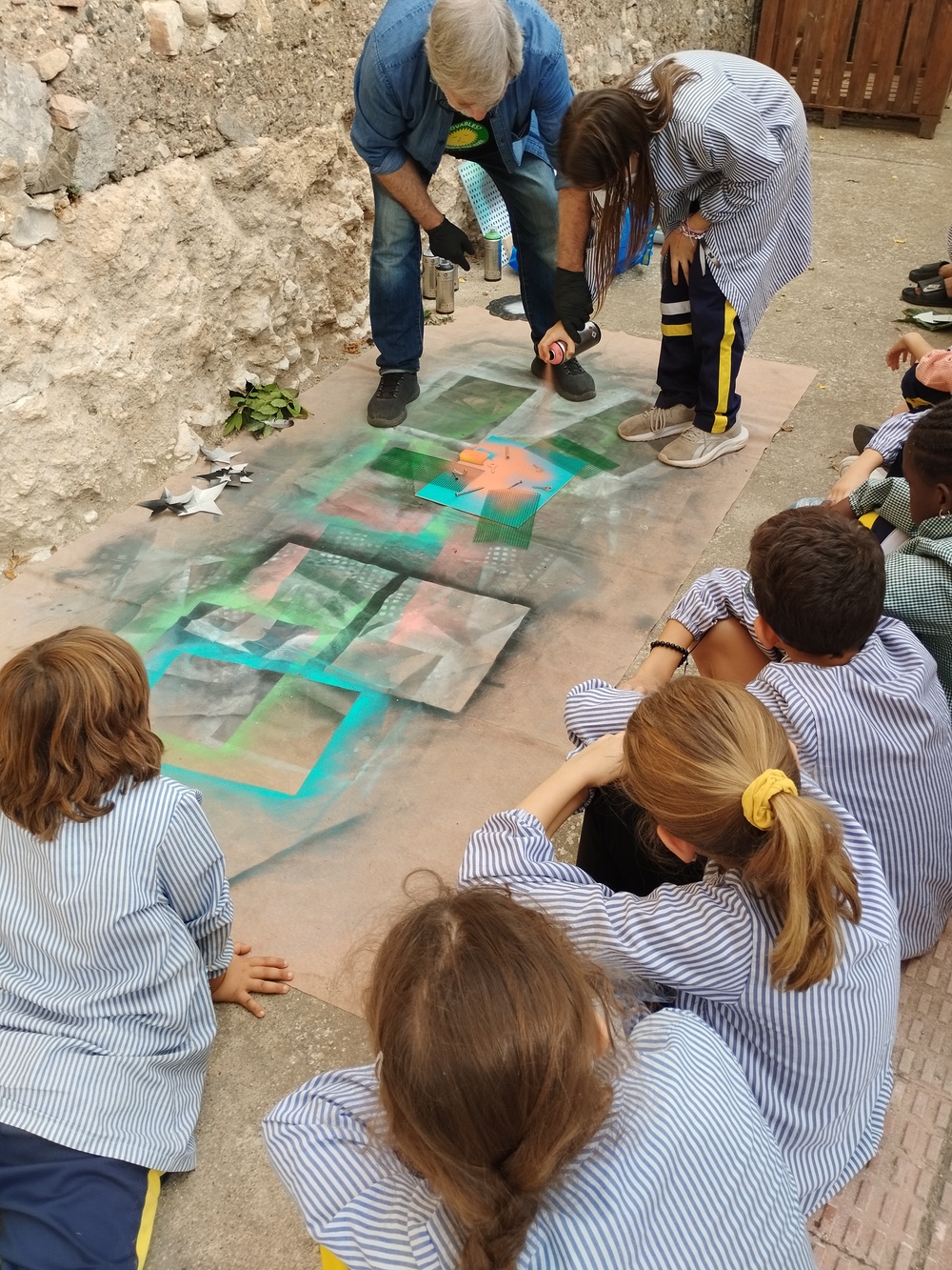 Els i les alumnes de l’escola hem gaudit d’una experiència artística molt especial amb l’artista local Josep Barjuan. Primer vam visitar Ca la Pubilla, on ens va mostrar les seves obres i la seva tècnica amb esprais de color sobre fusta.
