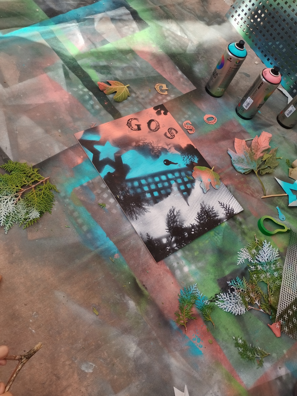 Un altre dia en va venir a veure a l’escola per fer un taller col·laboratiu amb tots els nens i nenes. Entre tots i totes hem creat sis obres d’art, utilitzant objectes quotidians i de la natura per fer formes i textures úniques.