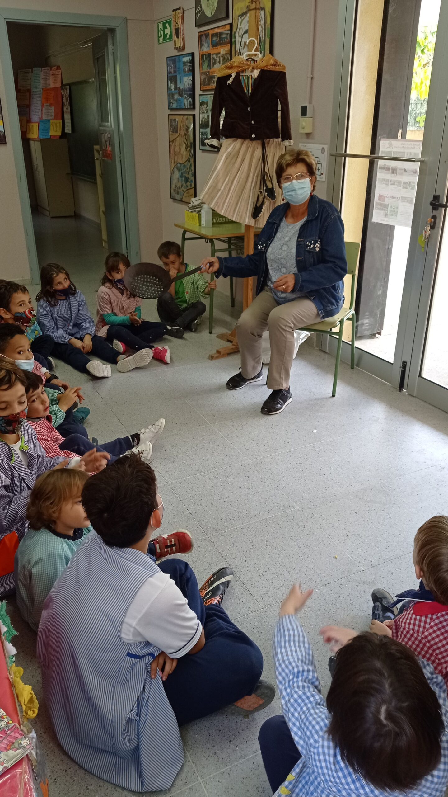 Ens ha visitat l’Aurora, una àvia de l’escola i molt contenta ens ha explicat com les castanyes s’han de torrar i je,je, je! Ens ha portat la paella foradada i fent honor a la tradició hem cantat i ballat en rotllana la cançó de La Castanyera i la del Marrameu.