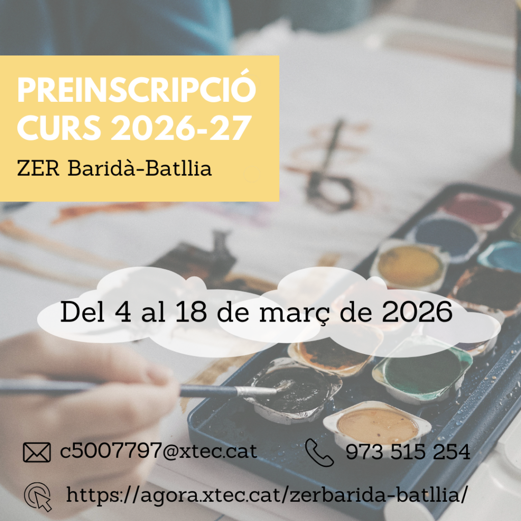 S’ha obert el període de presincripció, que aquest curs és del 4 al 18 de març, ambdós inclosos. És un procés totalment telemàtic que fa la família. Consulteu tota la informació aquí per Ed.Infantil i a aquí per Primària.