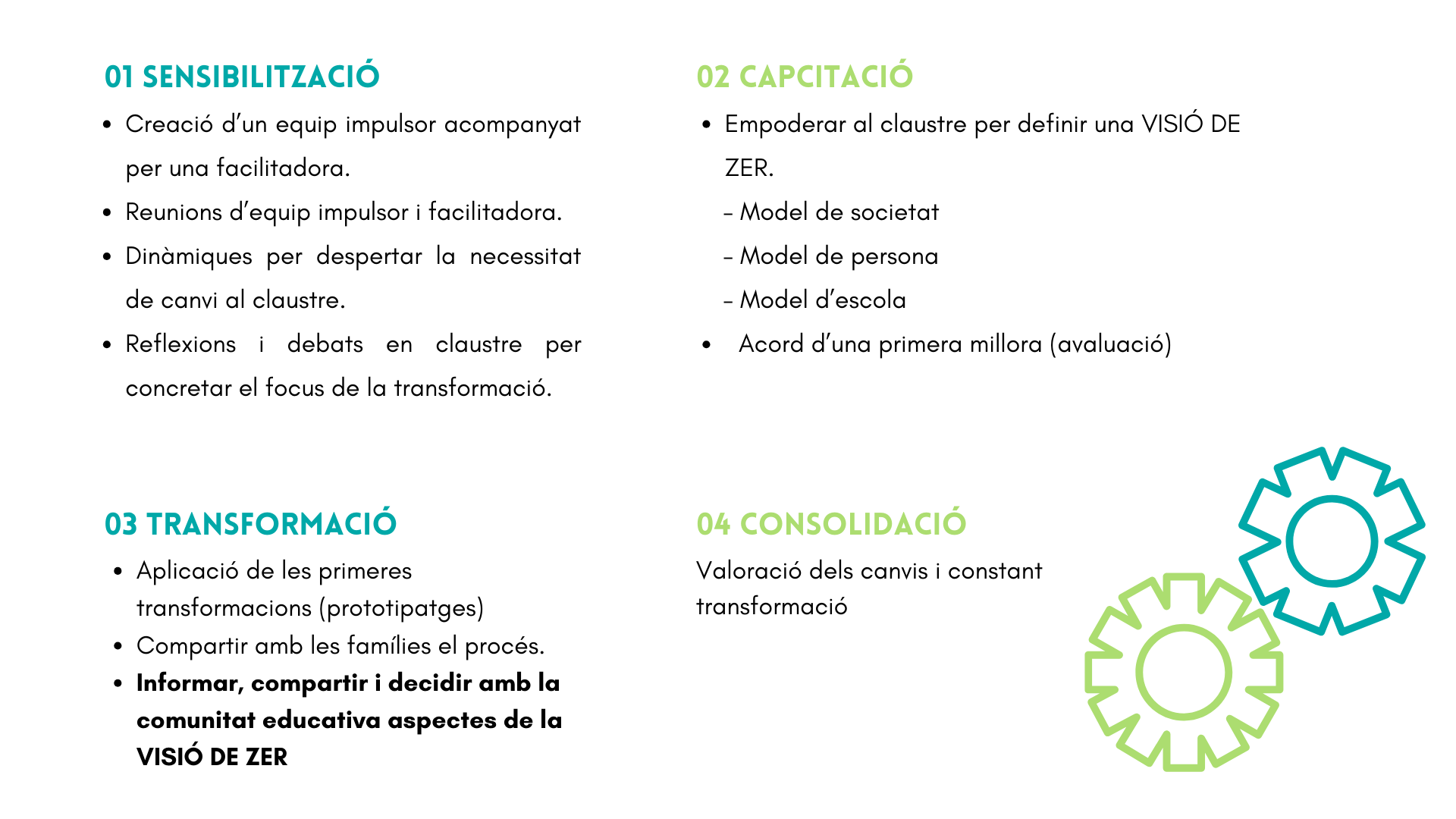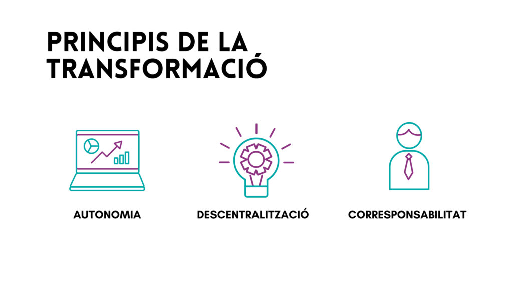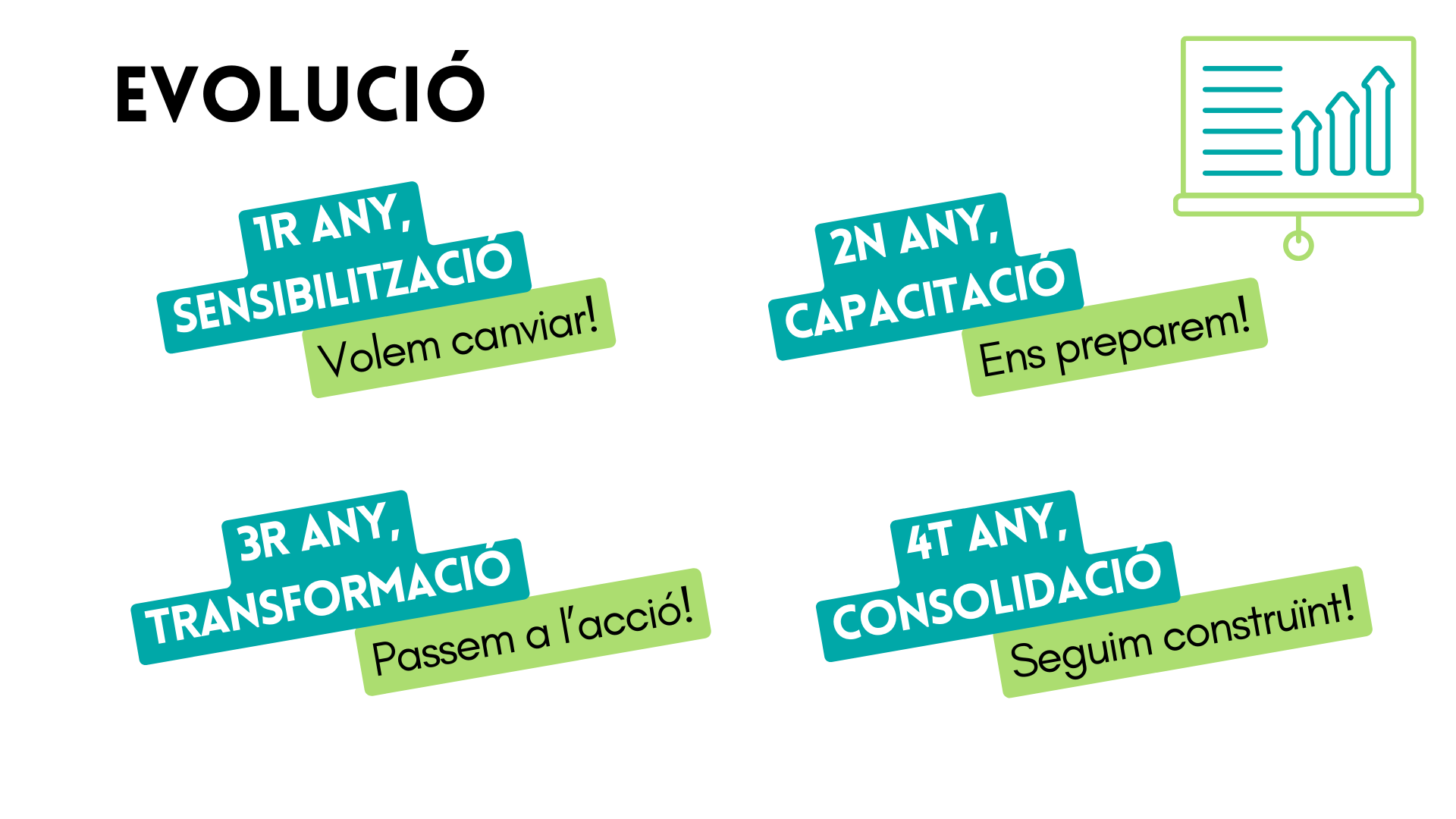 - El recolzament i guiatge a l’equip directiu i l’equip impulsor per garantir complicitats i promoure el treball en equip i el lideratge distribuït.