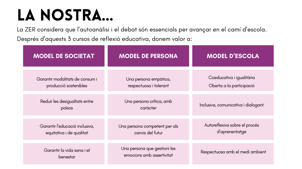 El setembre del 2021 la ZER va engegar un projecte d’innovació denominat PACTE (Programa d’acceleració de la transformació educativa/Eines per el canvi), amb l’objectiu d’impulsar processos de transformació educativa en els àmbits de l’organització, les metodologies d’ensenyament i aprenentatge, i el treball en xarxa intern i amb l’entorn.