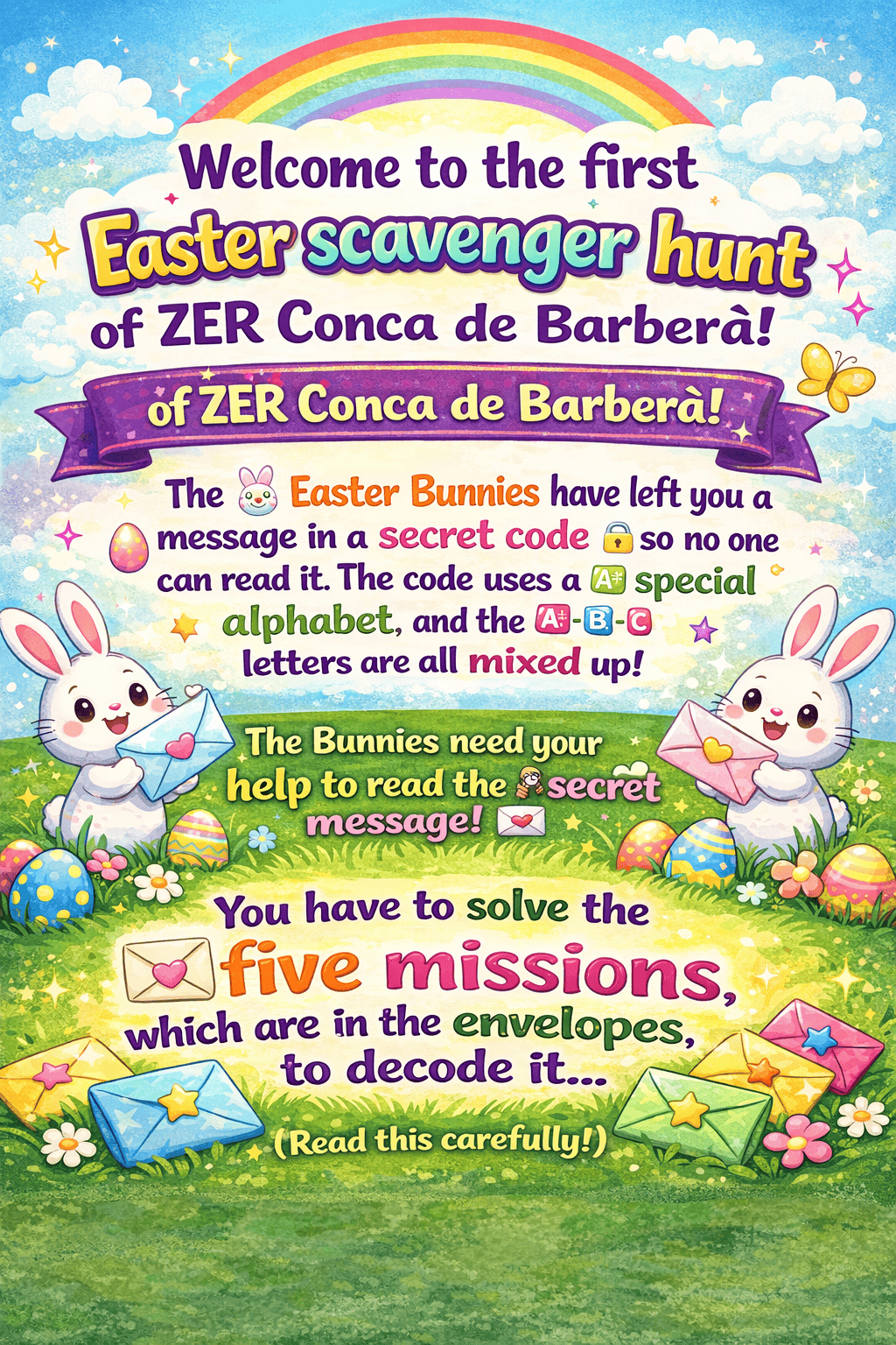 A total of 14 teams were formed, each made up of around 10 students and accompanied by a teacher. Once the groups were ready, the journey began, following a trail of bunny footprints along the path. At different points along the route, Easter-themed signs were set up with envelopes. Each group had to collect the envelopes.