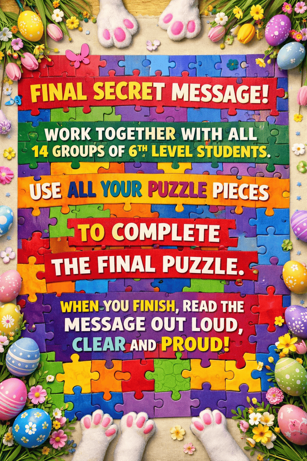 After successfully completing the first four missions, the groups received a code that allowed them to open the fifth envelope, where they found a piece of a large collaborative puzzle. Together, all 14 groups assembled the final puzzle.
