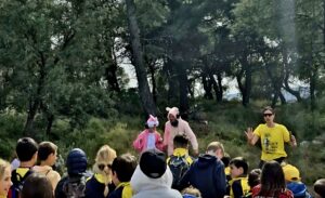 We kicked off the activity together in the playground in Pira, with students of all ages gathering to begin the adventure. Each student received a badge with an Easter-themed drawing. The first challenge was to group themselves according to the images, encouraging interaction and connections between students of different ages and schools.