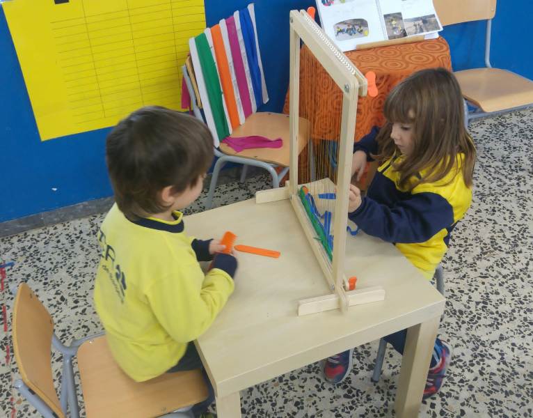 Cada matà les taules de la classe de la comunitat dels petits estan guarnides amb tot de propostes pensades per desenvolupar les seves habilitats. Els nens i nenes trien lliurement la proposta que més els crida l’atenció i amb l’acompanyament (o no) de l’adult les duen a terme. Dins de l’aula es respira un ambient de calma i treball i on cadascú troba els seu espai.