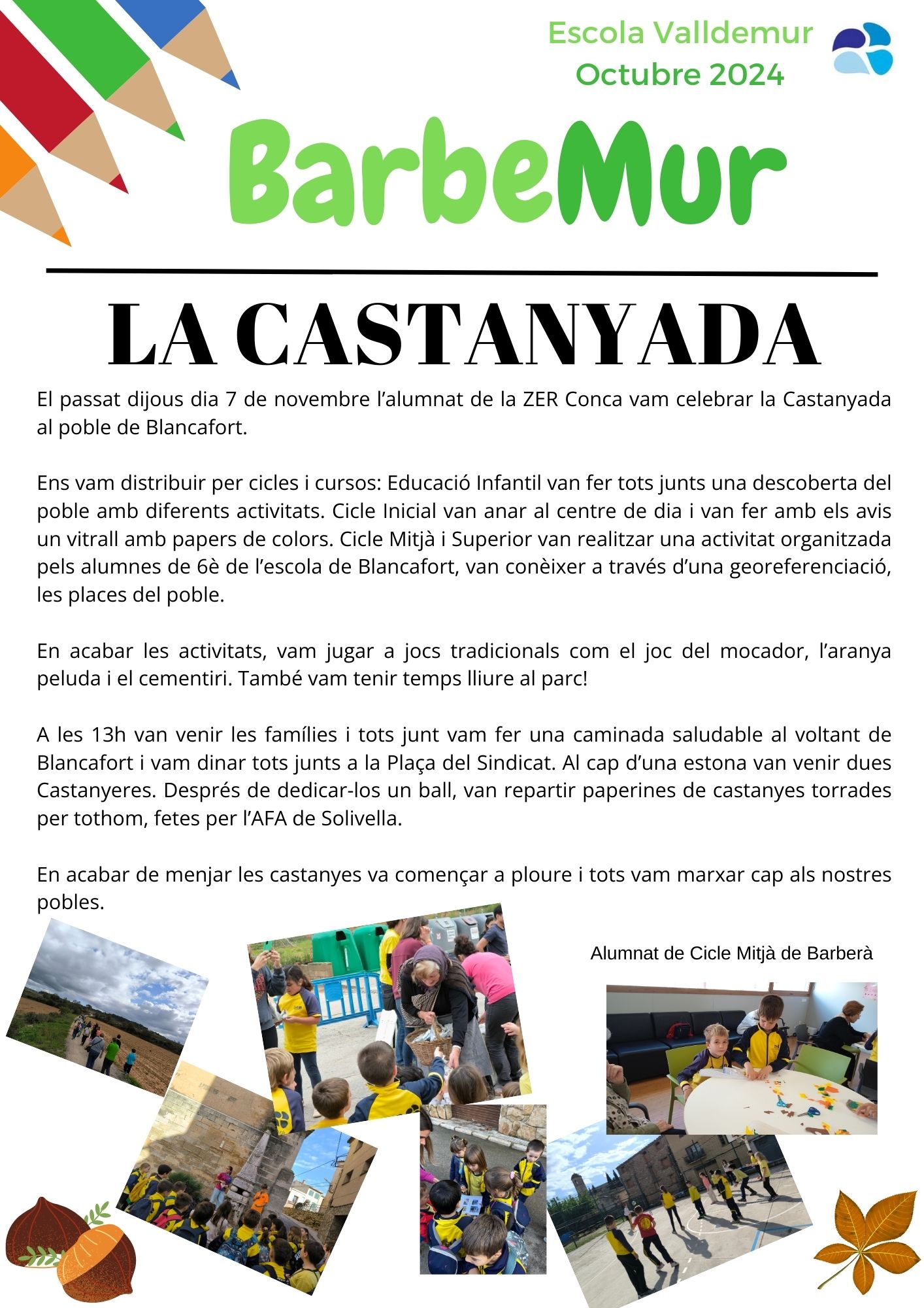 INFOZER – BarberMur Feu un comentari / Per admin / 17/11/2024 / General Portada / #barbemur, #escolarural #escolapetita #EscolesVerdes #transformacióeducativa #ZerConca, #halloween, #INFOZER #infozer, #lacastanyada