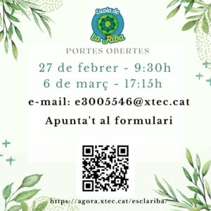 📍 Escola de La Riba → 27 de febrer (9.30 h) i 6 de març (17.35 h)