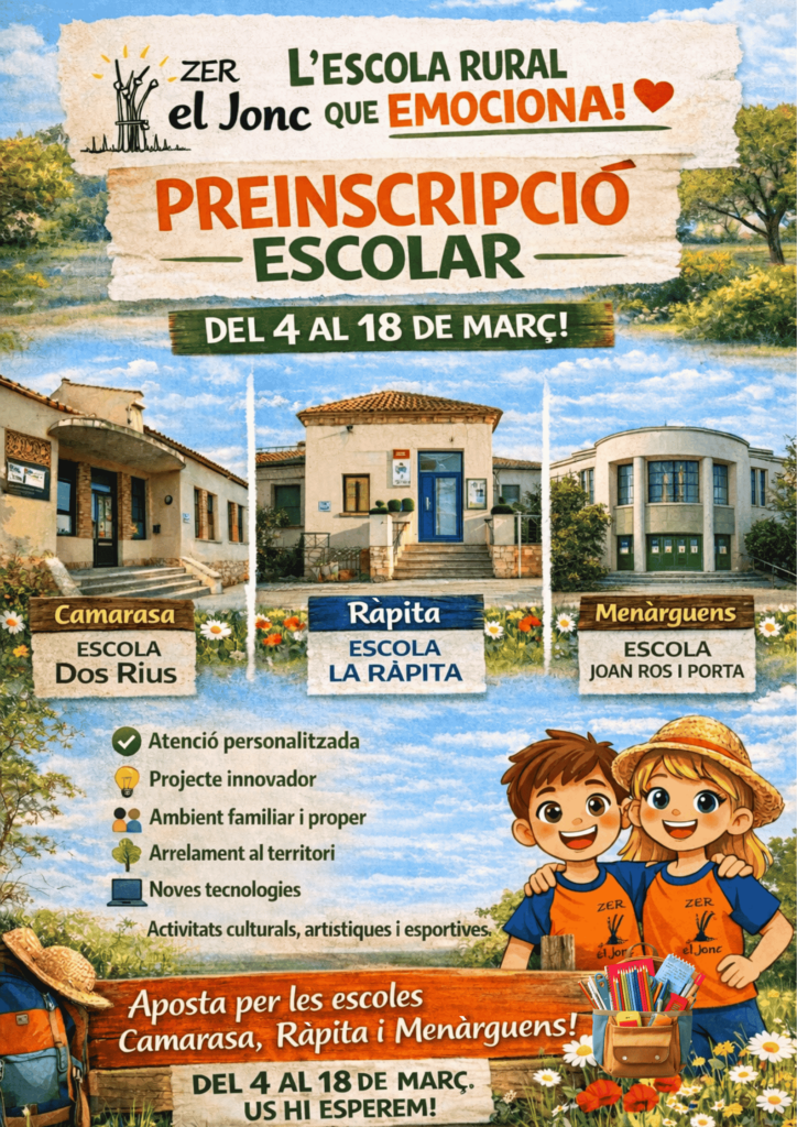 Del 4 al 18 de març s’obre el període de preinscripció per al proper curs escolar. És un moment important per a les famílies que volen formar part d’un projecte educatiu compromès, proper i de qualitat. WEB PREINSCRIPCIÓ Les nostres escoles destaquen per: Atenció personalitzada a cada alumne, respectant els seus ritmes d’aprenentatge. Projecte educatiu […]