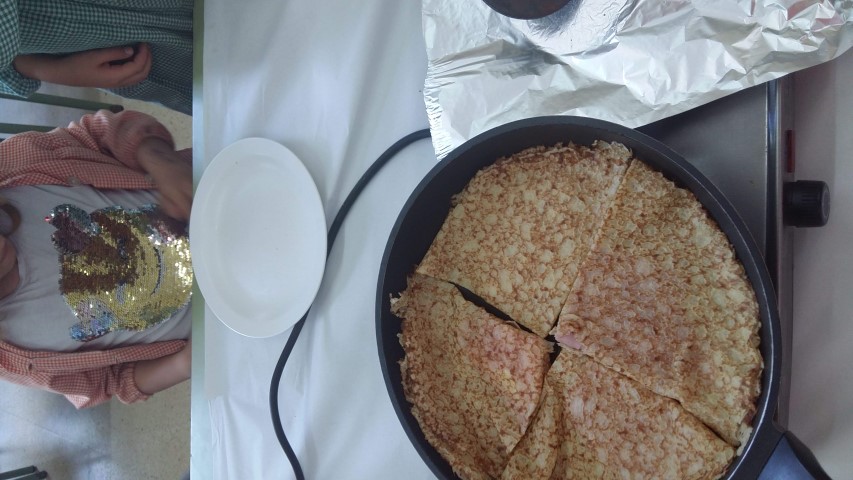 Els nens i nenes d’Educació Infantil i Cicle Inicial, a l’hora del taller d’experimentació, vam preparar unes creps de pernil dolç o gall d’indi amb formatge! Tota l’escola en feia olor! Eren ben bones!!! https://photos.app.goo.gl/rC5WjuCFgey1ei8M6