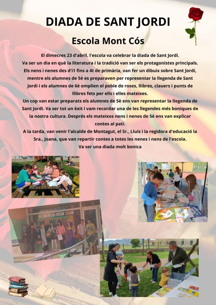 Diada de Sant Jordi_Escola Mont Cós Feu un comentari / Per Escola Mont Cós - ZER El Llierca / 12/05/2025 / Activitats Cicle Inicial Cicle Mitjà Cicle Superior Educació Infantil ESCOLA MONT CÓS