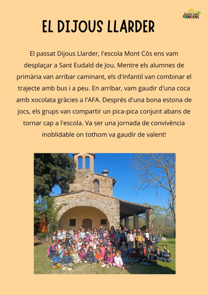 El dijous llarder_Escola Mont Cós Feu un comentari / Per ZER El LLierca / 28/04/2026 / Activitats Cicle Inicial Cicle Mitjà Cicle Superior Educació Infantil ESCOLA MONT CÓS
