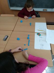 Els alumnes de cicle mitjà de l’escola Mont Cós, han realitzat la segona sessió de figura humana, amb l’ajuda de la Pilar Fontaniol. La sessió que han realitzat avui consistia a repassar els conceptes apresos en el dia anterior i a començar a dissenyar la seva figura amb volum. Aquesta figura l’han fet amb plastilina.
