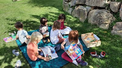 Aprofitem l’entorn i el sol per gaudir i descobrir de les aventures dels llibres i contes que llegim.