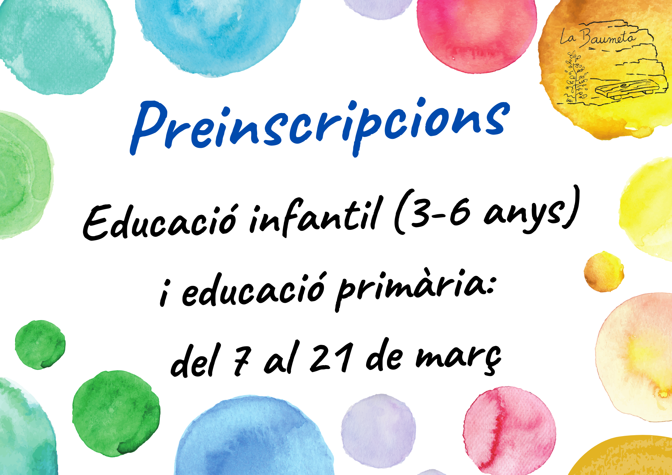PREINSCRIPCIONSPer Anna Bonamaison / 15/02/2022 / La Baumeta https://preinscripcio.gencat.cat/ca/inici/