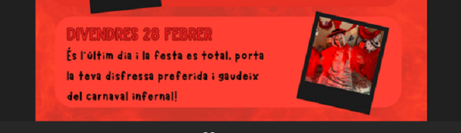 Em va agradar molt el dia del Carnaval perquè vaig veure amics que mai veig. La disfressa de dimonis era molt guai, ens quedava molt bé!