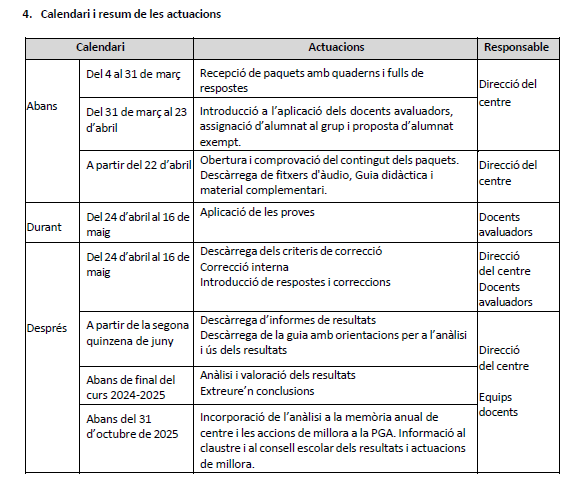 Calendari, normativa i aplicatiu
