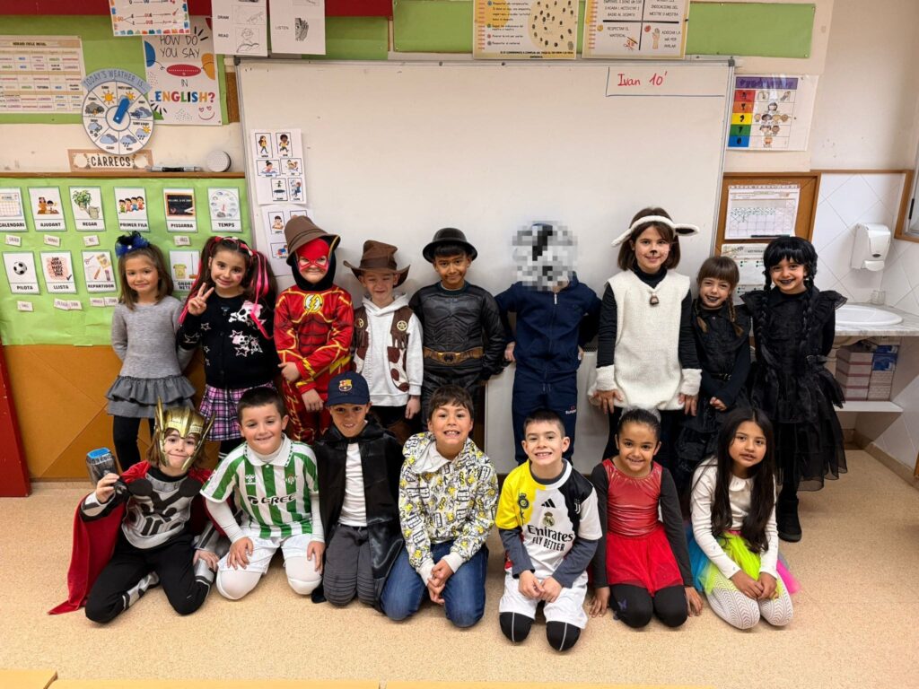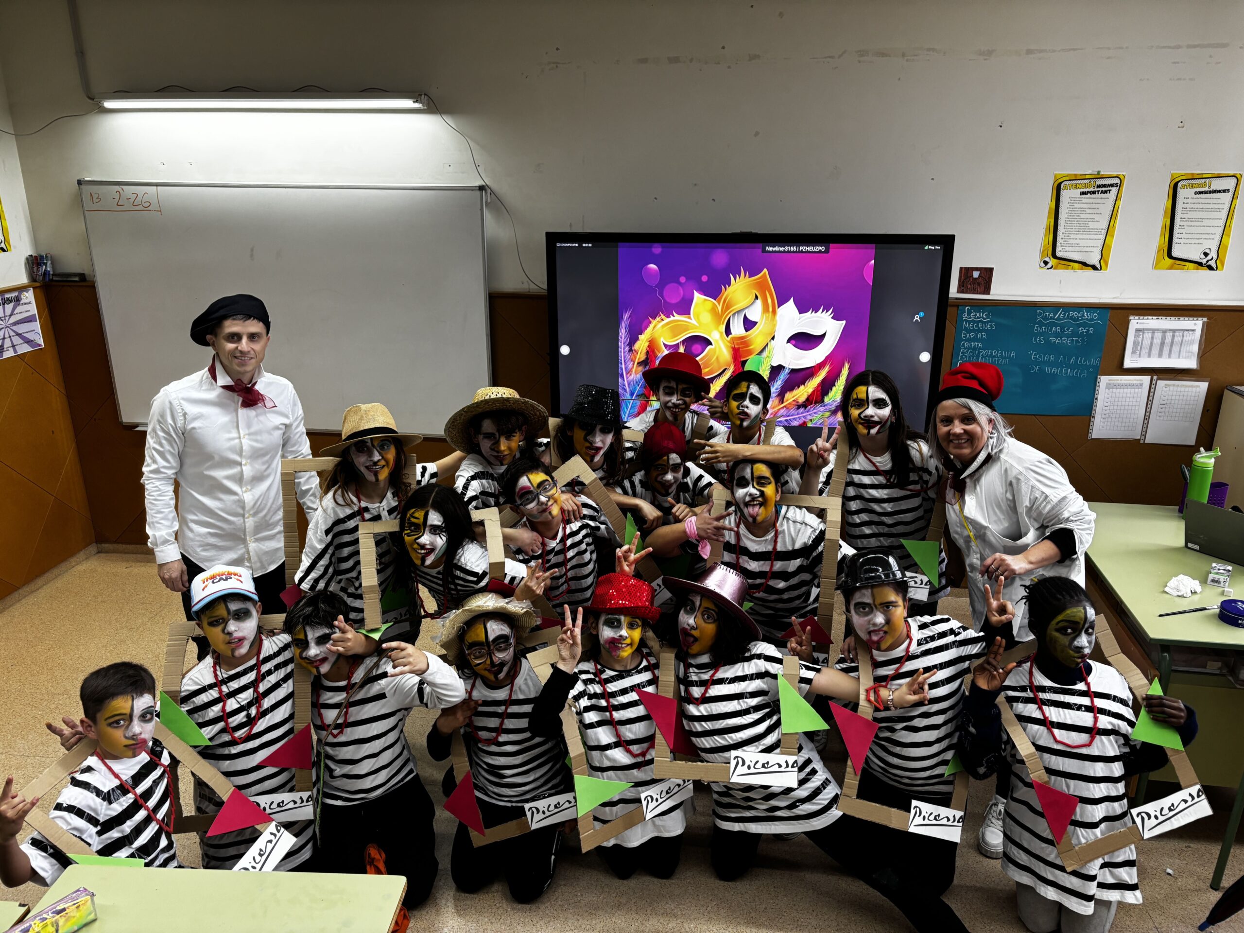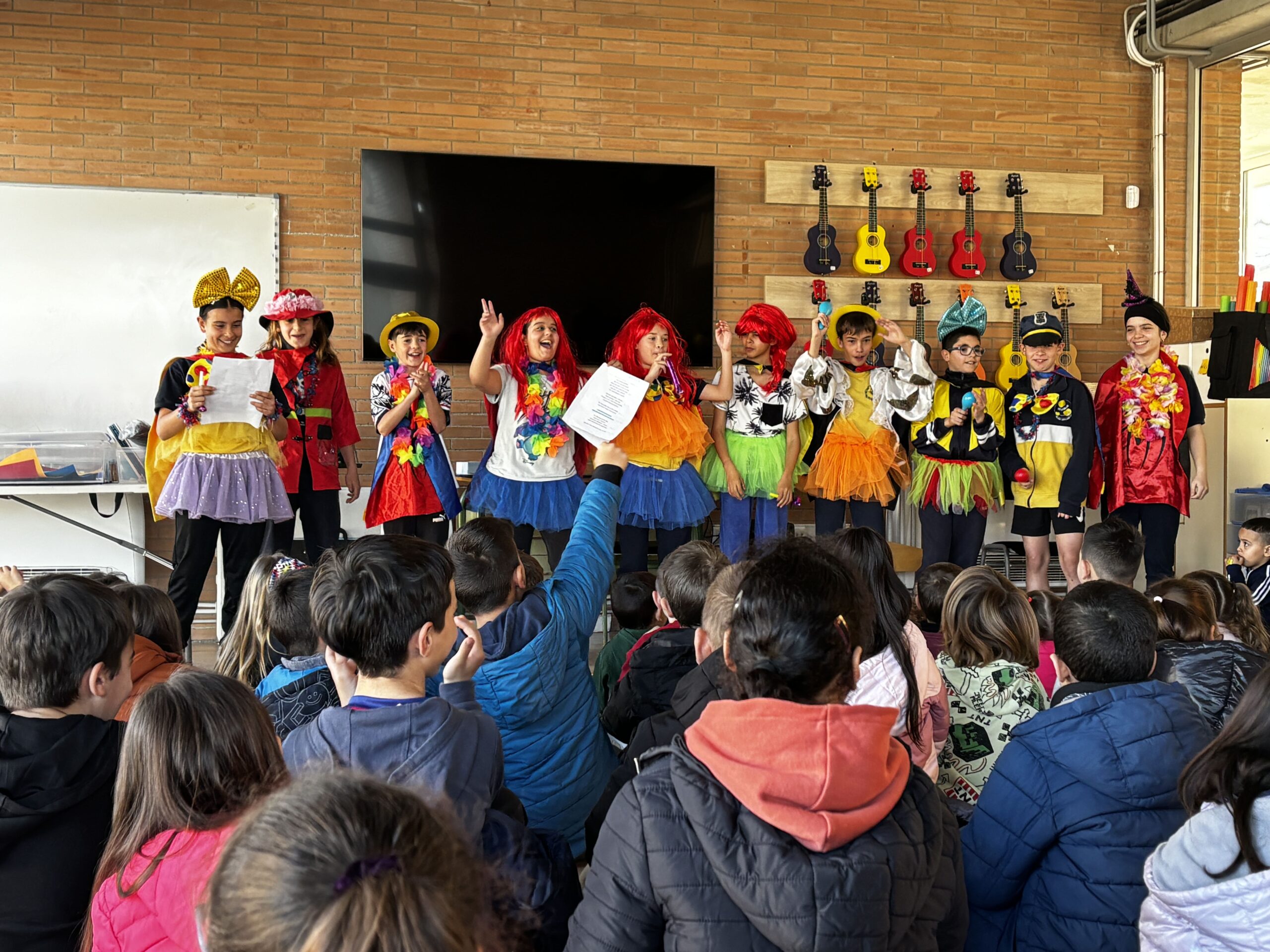 La setmana va començar i, després del pregó, dimarts vam venir a l’escola amb una sabata o un mitjó de cada color. A causa de la vaga docent del dimecres i del tancament d’escoles a causa del vent del dijous, no vam poder celebrar tots els dies tal com estava previst. Tot i això, divendres al matí vam venir disfressats amb les nostres disfresses de casa i amb un complement al cap, i vam intentar mantenir l’esperit de Carnaval.