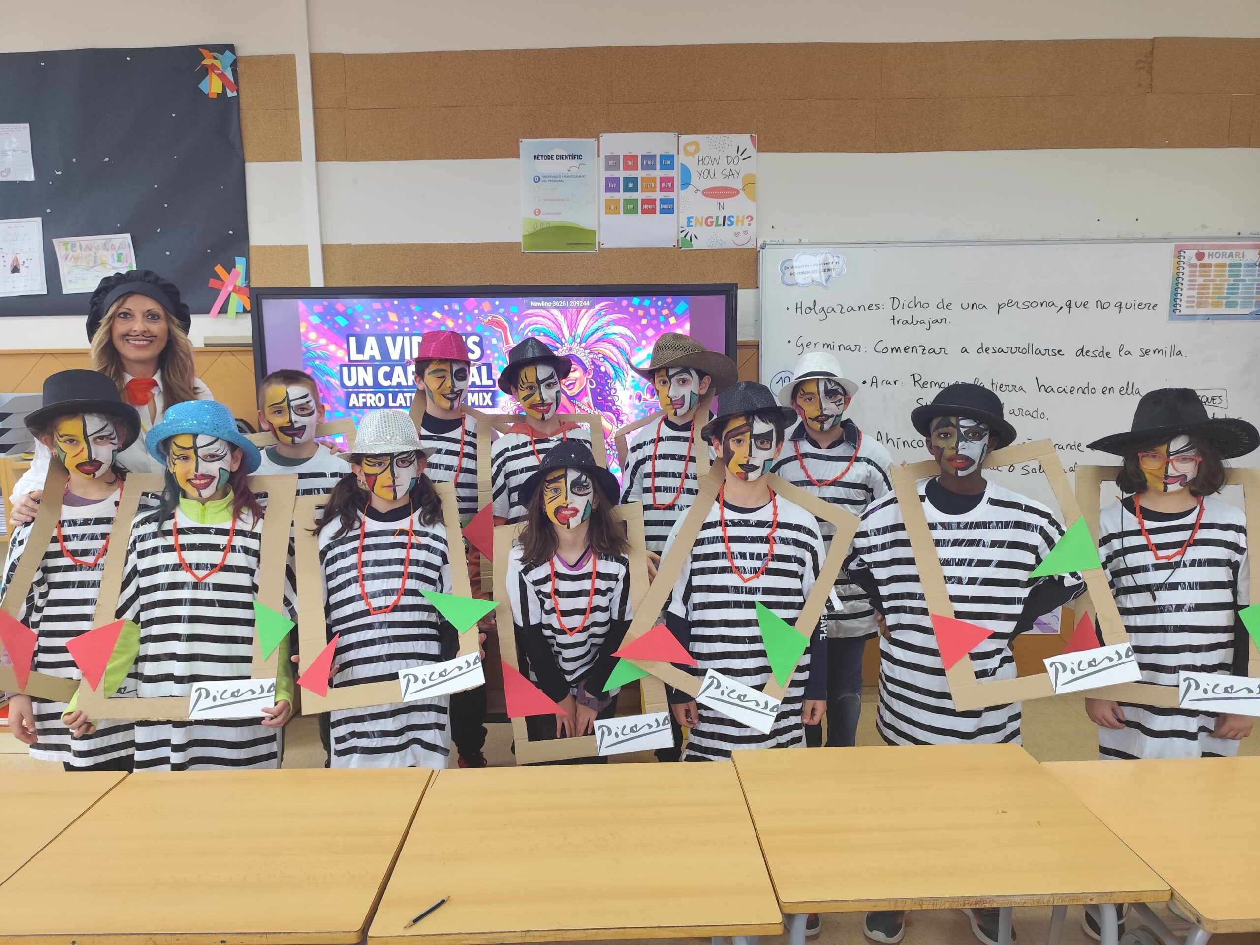 Divendres a la tarda ens vam disfressar de quadre de Picasso. El que més pena ens va fer va ser que no vam poder fer la traca final del Carnestoltes tot fent la rua pels carrers de Castellserà tot lluint la disfressa que havíem creat i fent la dansa i la cançó que s’havia preparat, ja que divendres va ploure molt al llarg de tot el dia. Teníem moltes ganes de sortir al carrer amb les nostres disfresses, però el mal temps ho va impedir.