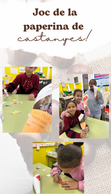 Seguint amb el treball de la tardor, les alumnes que reben suport lingüístic han elaborat el Joc de la Paperina de les Castanyes. Hem aprofitat la creació d’aquest joc com l’excusa per a iniciar-se en l’escriptura de petits textos a partir de frases senzilles com les normes del joc, i la construcció de textos orals per explicar el joc.