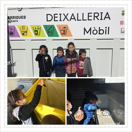 Durant dos dies hem tingut la sort de tenir la deixalleria prop de l’escola. Els més petits de l’escola l’han visitat i han portat alguna cosa per a reciclar. D’aquesta manera vam poder continuar aprenent sobre el tema del reciclatge que dins l’aula treballem diàriament.