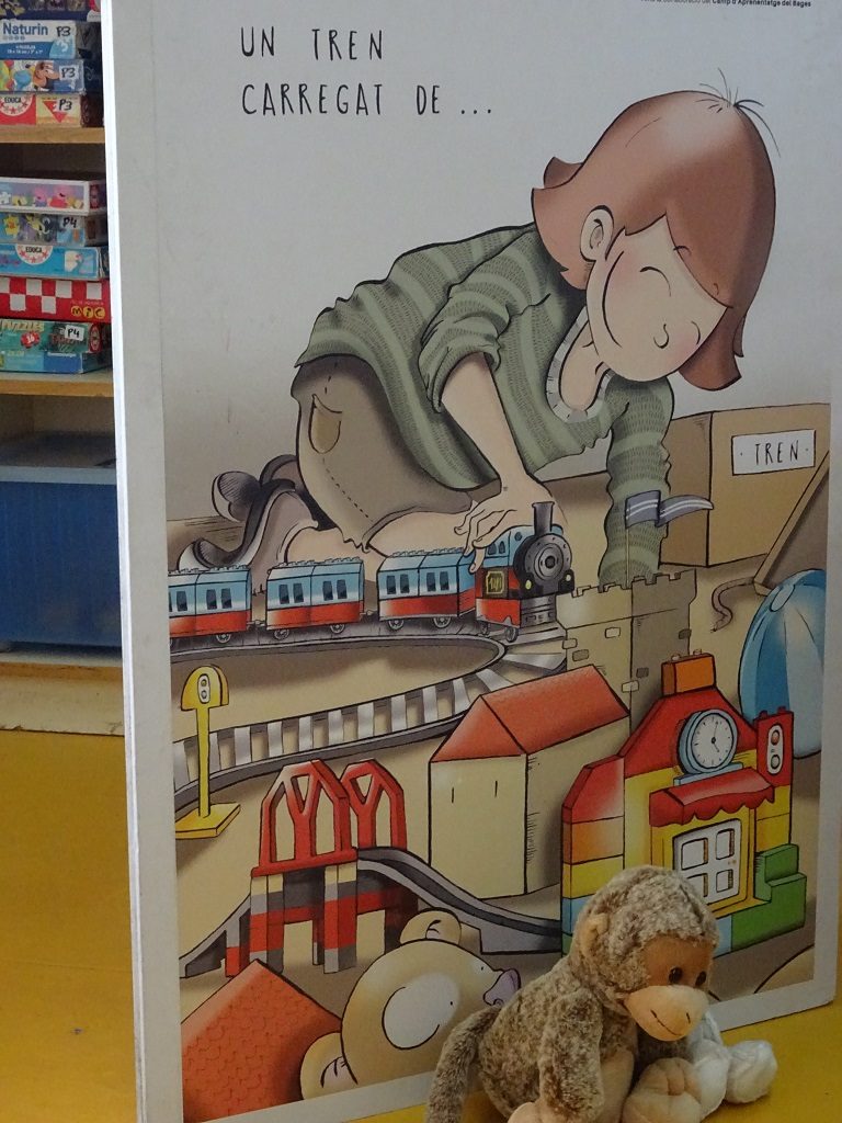 Als alumnes de P3 i P4 ens va explicar un conte que es diu “Un tren carregat de…”, sobre els tipus de deixalles que podem tirar a la deixalleria mòbil.