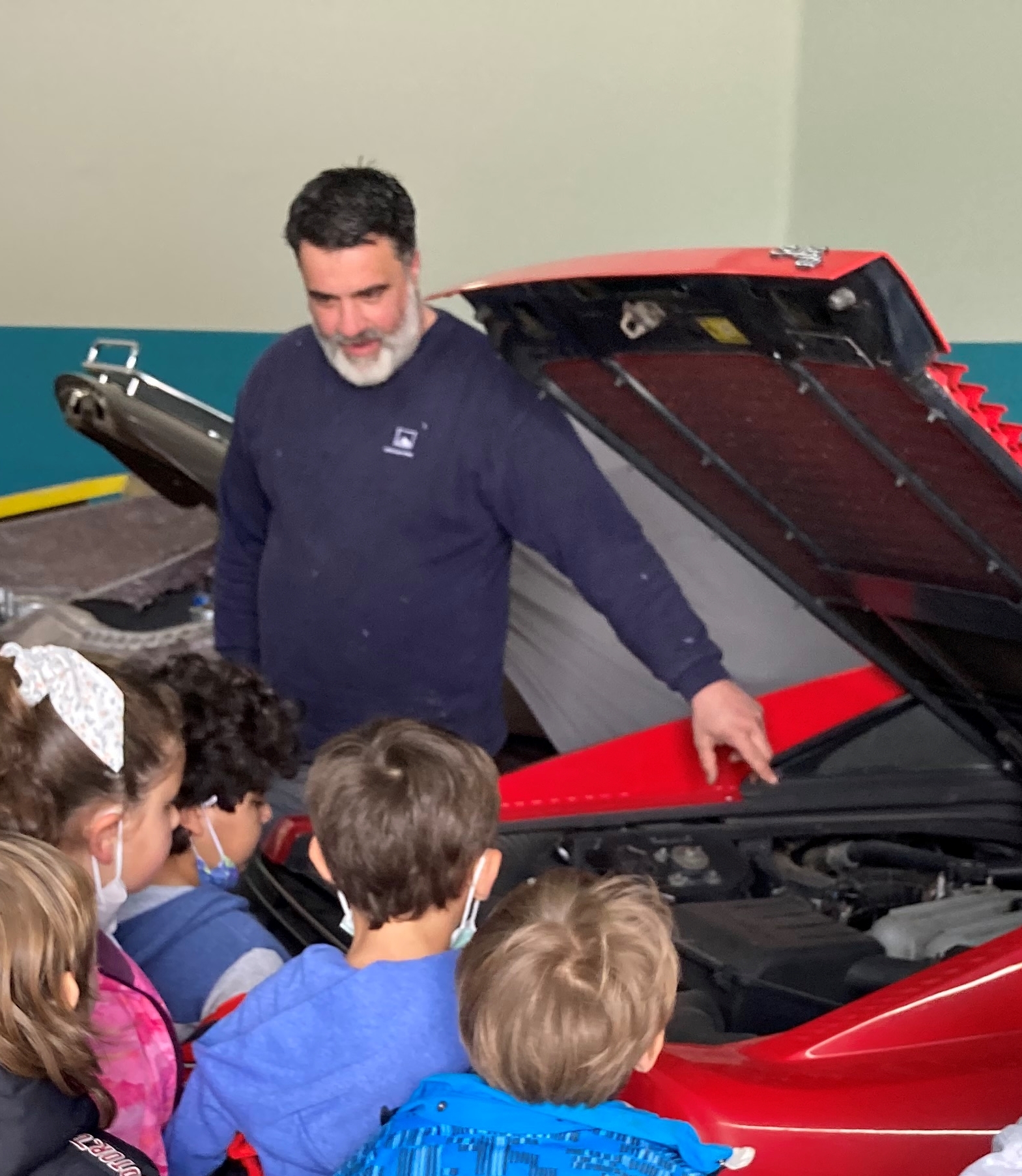 Hem anat al taller del pare de la Laia M. i hem pogut conèixer de més a prop com és l’ofici de mecànic. Hem pogut veure cotxes de carreres per dins i per fora. Hem fet veure que conduíem un Ferrari i hem vist el seu motor. També hem vist com desinflava una roda per treure-li la llanta i tornar-la a muntar. Quin soroll! Els pneumàtics tenen molt aire a dins! El pare de la Laia ens ha enlairat un cotxe amb l’elevador i així hem pogut observar com és cotxe per sota. Que divertit!