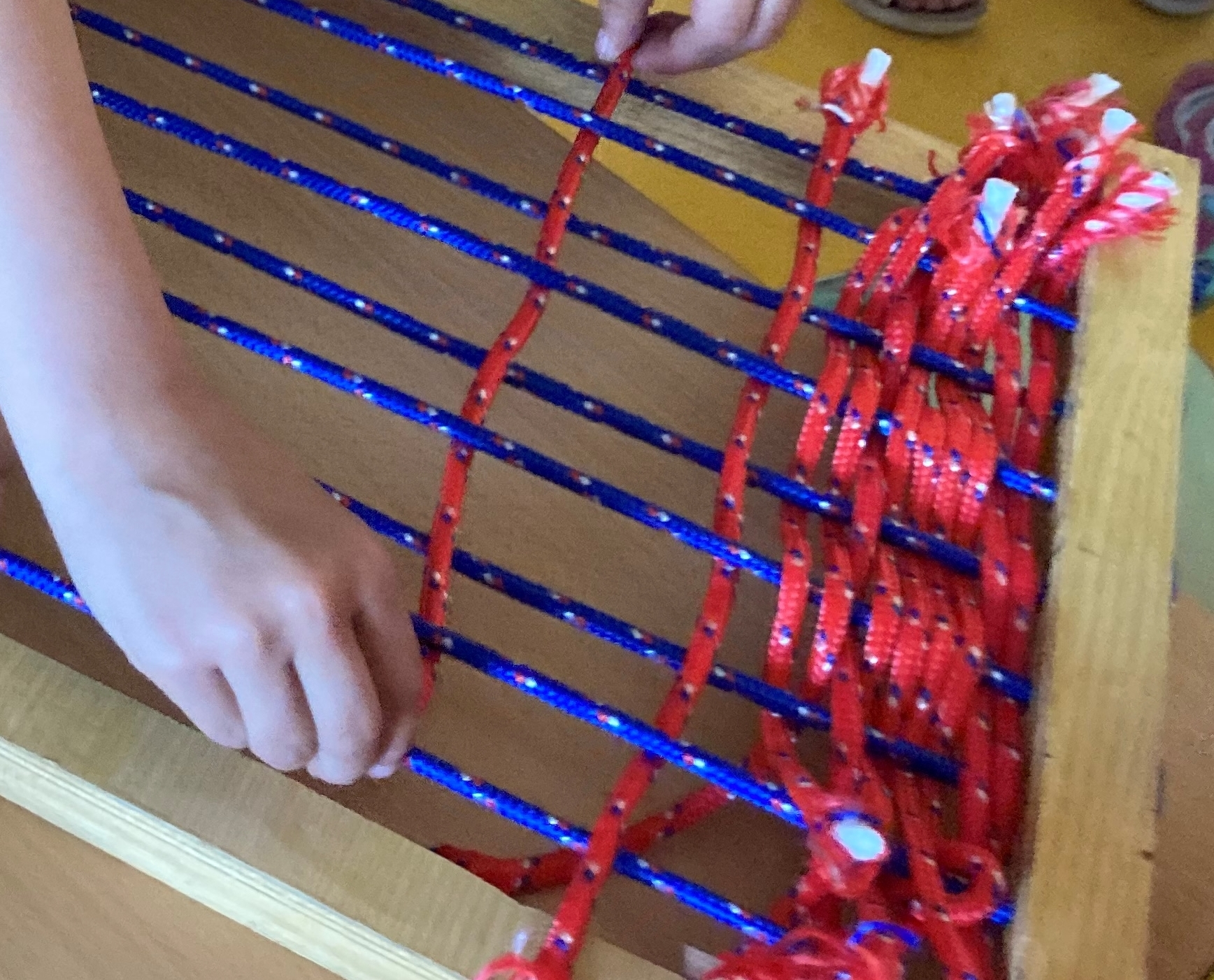 A classe hem pogut practicar aquest ofici, a partir d’un tapis i cordes, les quals hem fet passar pel tapis fins a aconseguir un teixit. Ens ha agradat molt.
