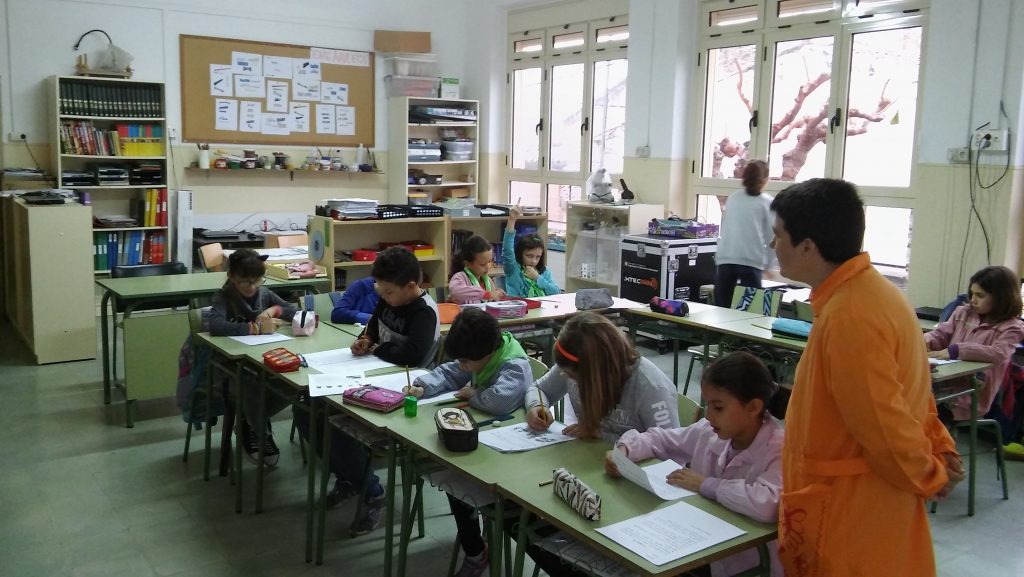 L’aula del “mig” o del “porxo” és la que utilitzem els de CI. Té una gran vidriera que dóna al pati. |