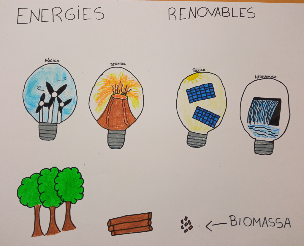 Energies renovables Les energies renovables són aquelles que procedeixen de fonts pràcticament inesgotables, com pot ser el sol, les marees, el vent, la biomassa … Energies renovables vistes pels alumnes: ccmm