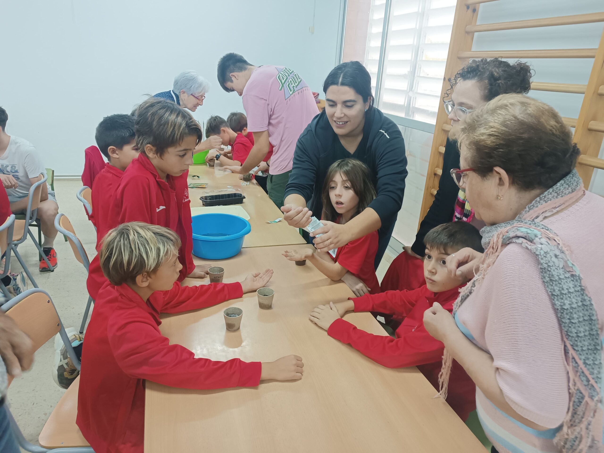 El passat dijous dia 26 d’octubre, l’alumnat de la Comunitat dels mitjans i dels grans vam rebre la visita de la Begonya, d’Unió de Pagesos, que ens va venir a fer un taller de sensibilització envers el tracte amb la gent gran. Primer vam descobrir amb diferents imatges quins aspectes hem de tenir en compte quan estem amb els padrins, padrines i la gent adulta en general. El saber esperar, posar-nos al lloc de l’altre, compartir sabers…, després vam fer una dinàmica al pati amb petites representacions i finalment vam fer un taller amb els padrins i padrines on vam plantar llavors de diferents plantes aromàtiques: calèndula, flor de sant Joan, menta, romer… l’experiència va ser tot un èxit i els padrins i padrines ens van explicar un munt de curiositats relacionades amb les plantes aromàtiques que podem collir al nostre entorn.