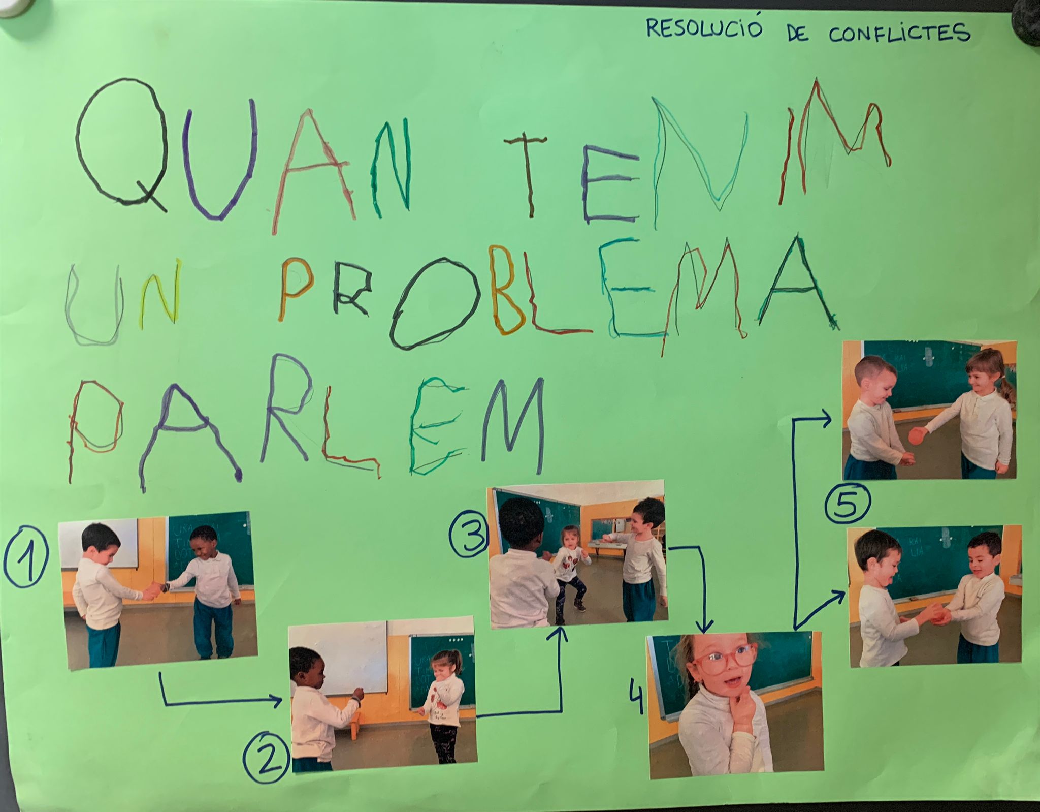 A l’Escola Otogesa, els nens i nenes d’educació infantil han abordat la resolució de conflictes a partir d’un curtmetratge. Els infants de P3 han escenificat un conflicte i les seves possibles solucions. Tot seguit, han penjat les imatges en un cartell, on els i les alumnes de P4 i P5 hi han posat les paraules.