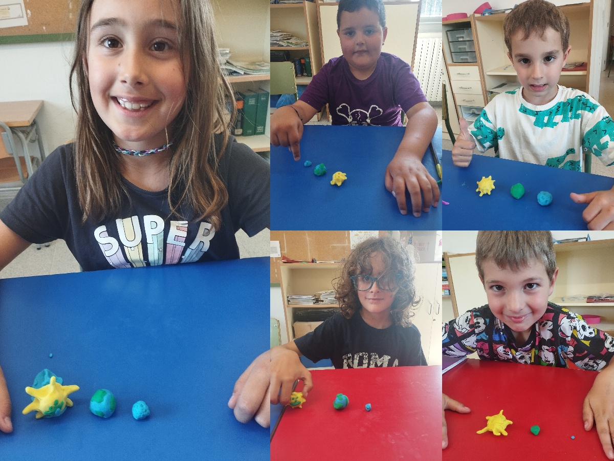 Here you have some photos! It is amazing! Not only were they able to represent the movements, they also created the Sun, the Moon and the Earth with their own personal characteristics: colour, texture and shape.