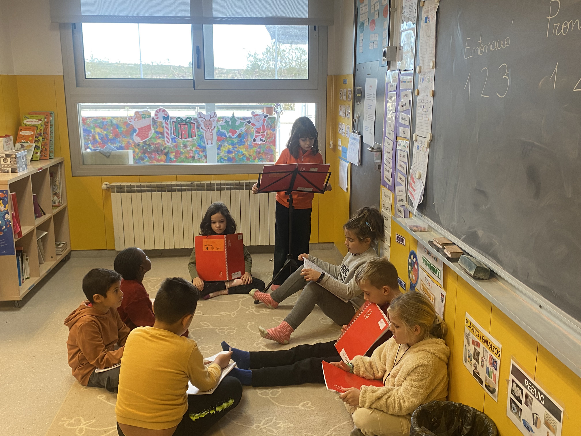 Els alumnes de primer i segon aquesta setmana hem escrit a la nostra llibreta una vivència personal. I per la tarda a l’espai lector llegim cada alumne el nostre escrit i utilitzem el faristol per ser el protagonista lector. Després cada alumne a nivell oral fa una petita valoració de com ha llegit el nostre company.