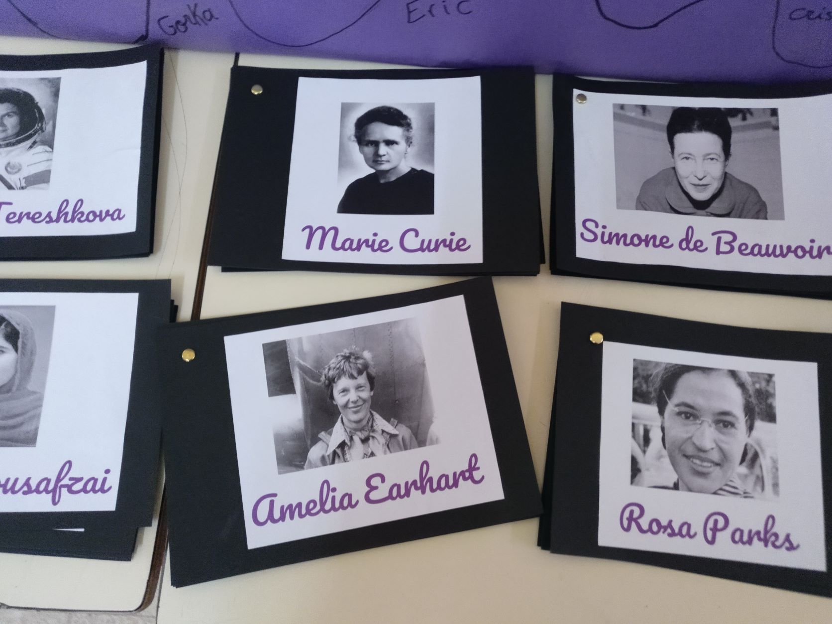 Cada cual eligió una mujer sobre la que investigar un poco sobre su biografía y logros. Aprovechando que en este trimestre íbamos a crear una tira cómica, los alumnos y alumnas han plasmado un episodio importante de la vida de estas mujeres en cuatro viñetas en formato de cómic.
