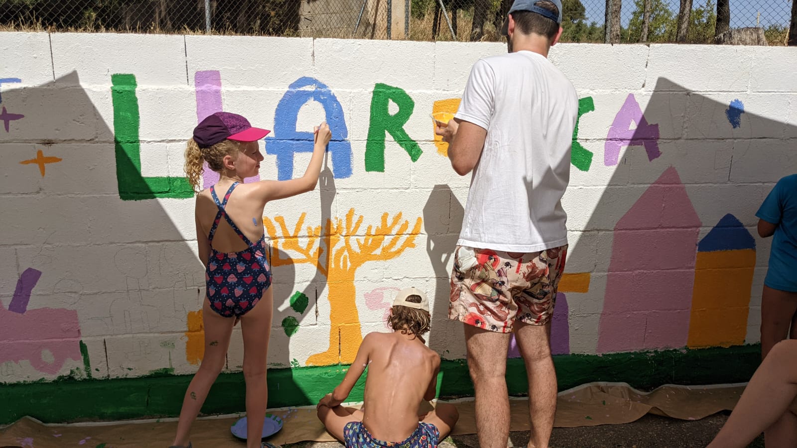 El dimarts vam iniciar l’activitat amb un taller a l’escola per escalfar motors i entrar en matèria, “cadàver exquisit” va ser l’activitat escollida inicialment, posteriorment tots els nens i nenes van elaborar dibuixos vinculats amb el poble. El dimecres ja ens vam desplaçar tots i totes a les piscines per pintar entre tots un mural col·laboratiu amb els dibuixos que havíem elaborat cadascun de nosaltres el dia abans.