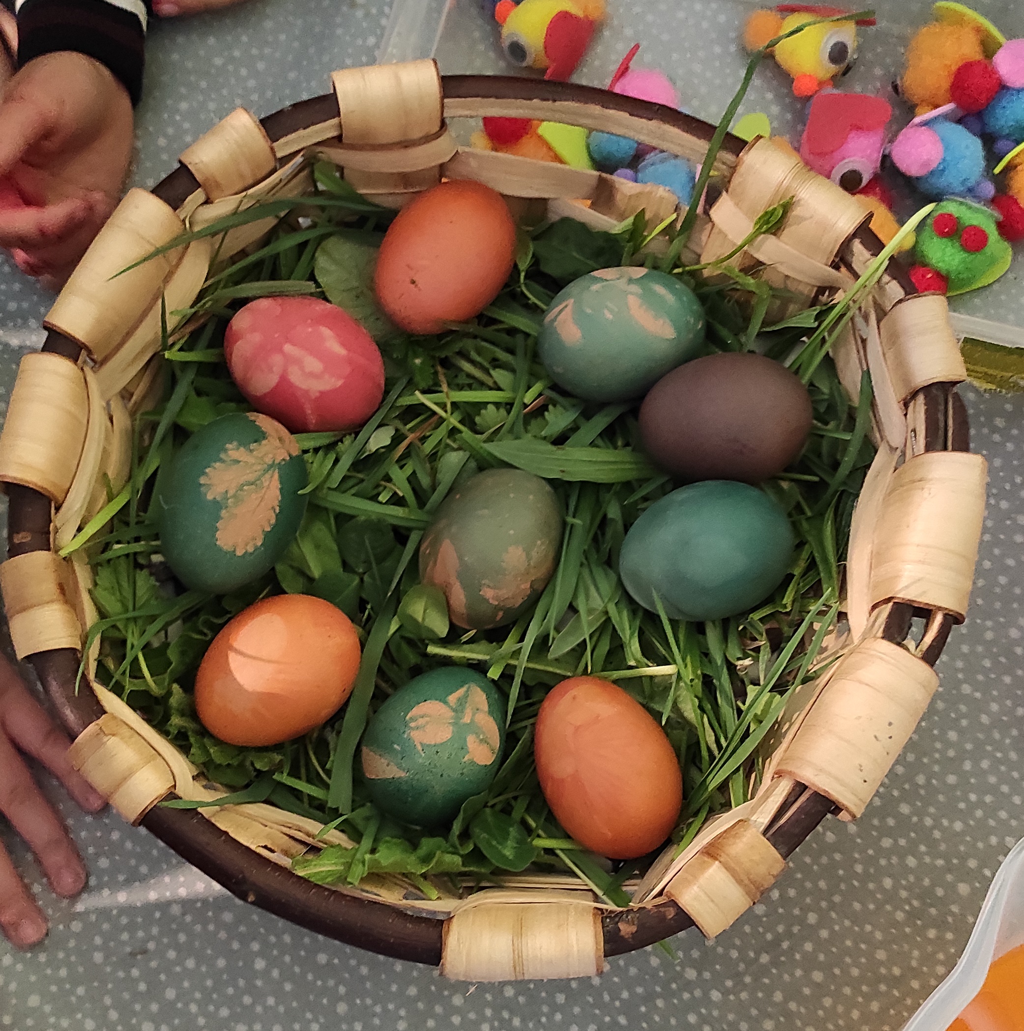 Nosaltres també hem decorat ous de pasqua però ho hem fet seguint la versió moderna romanesa, amb uns tints espacials que la mare de la Martina ens va portar.