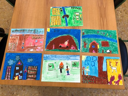Aquests són els dibuixos realitzats per l’alumnat de primer a quart presentats al Certamen de Pintura Rural Infantil “Fertiberia”. Pel que fa als motius dels dibuixos ( pintats amb ceres ) , es