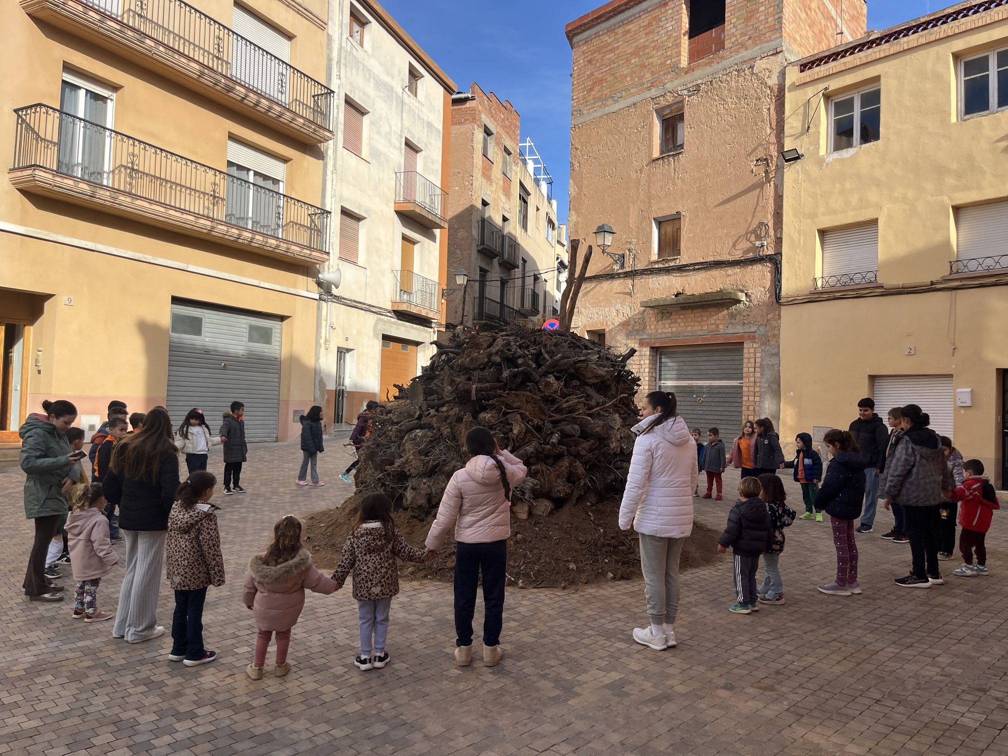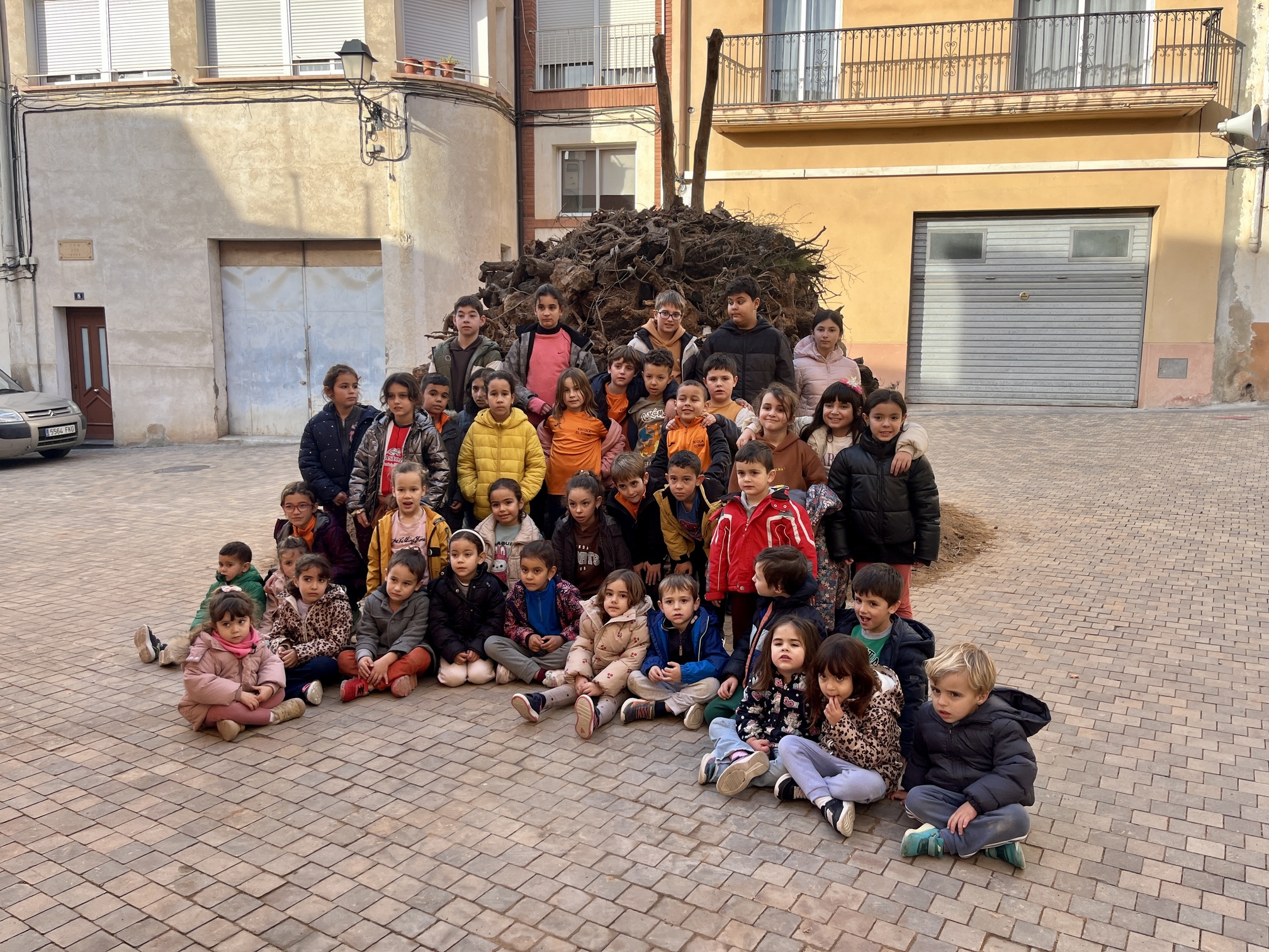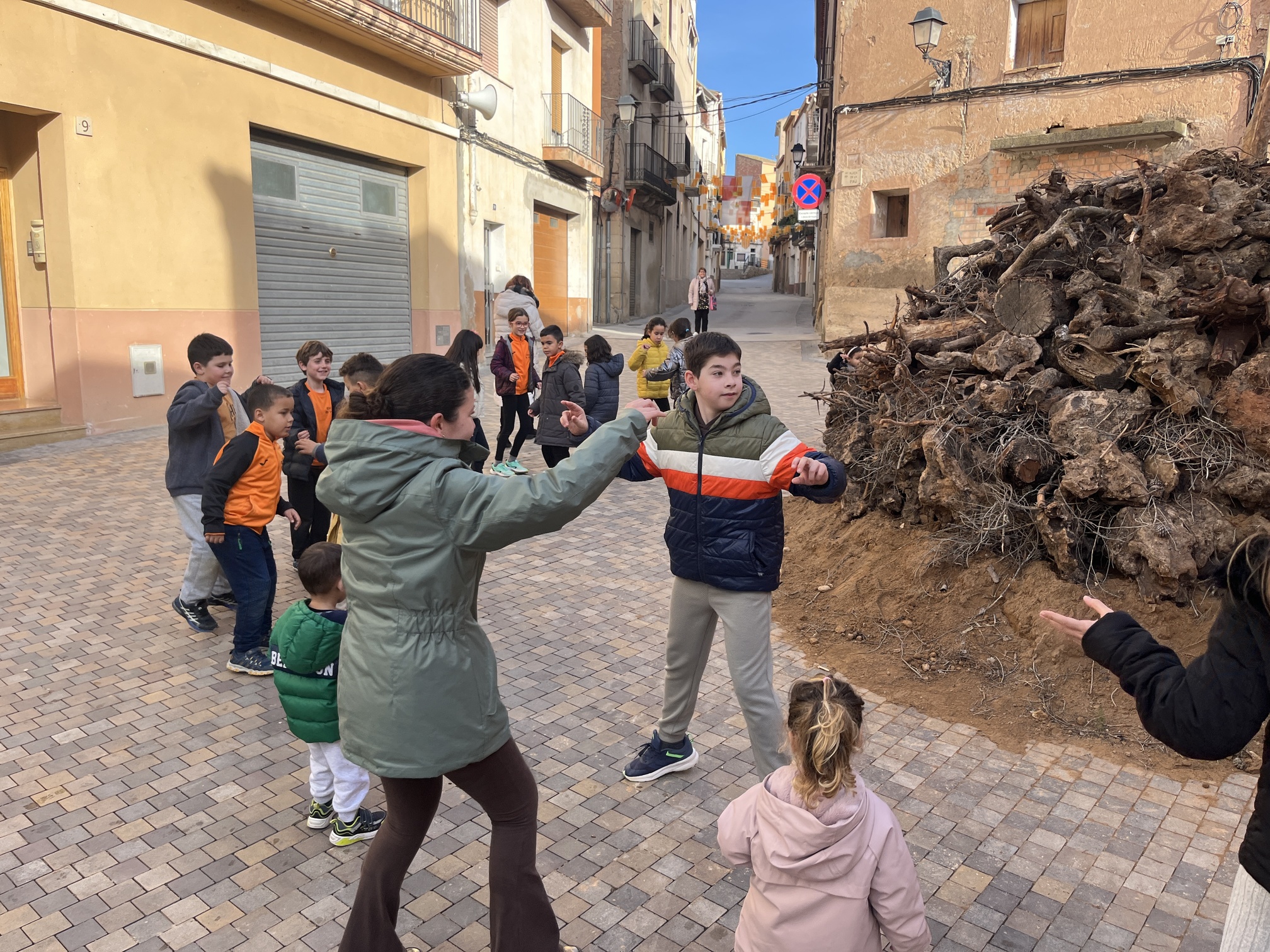 A la tarda, tot l’alumnat de l’escola ens vam dirigir fins a la plaça de l’Ajuntament amb un bon ambient de festa major, on vam poder visitar la foguera i ballar, tot fent rotllana al seu voltant, la jota que havíem après al matí.