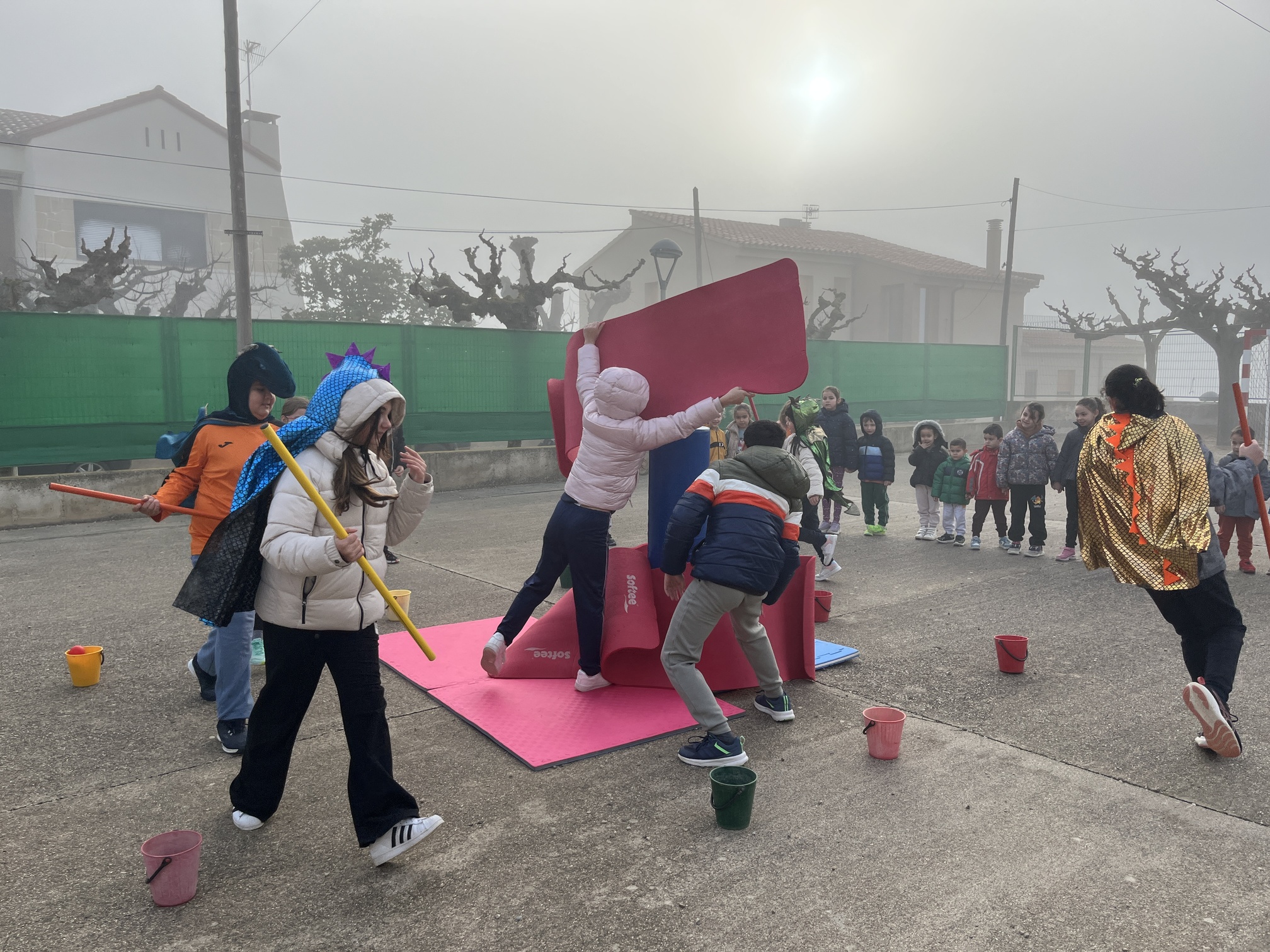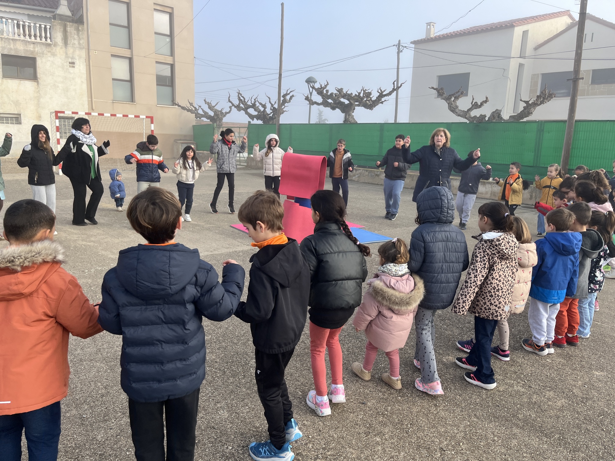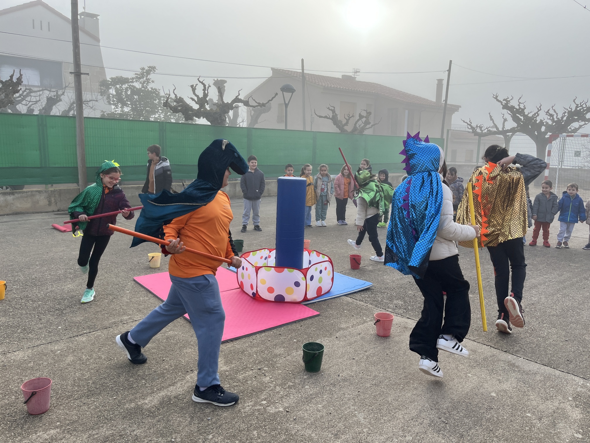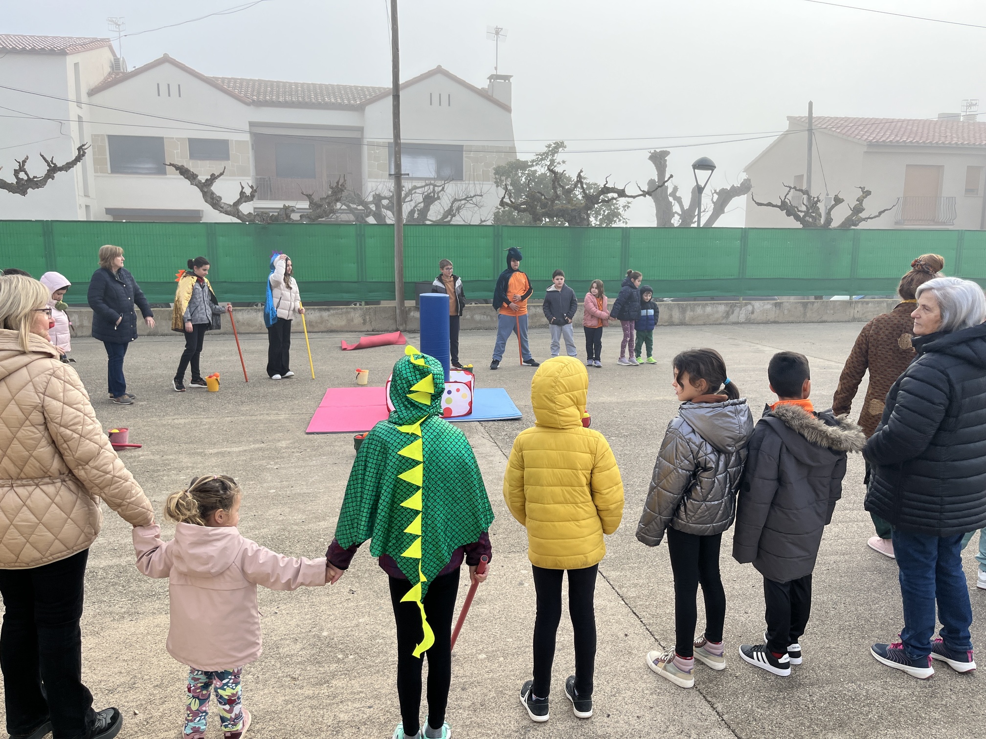 A la tarda, tot l’alumnat de l’escola ens vam dirigir fins a la plaça de l’Ajuntament amb un bon ambient de festa major, on vam poder visitar la foguera i ballar, tot fent rotllana al seu voltant, la jota que havíem après al matí.