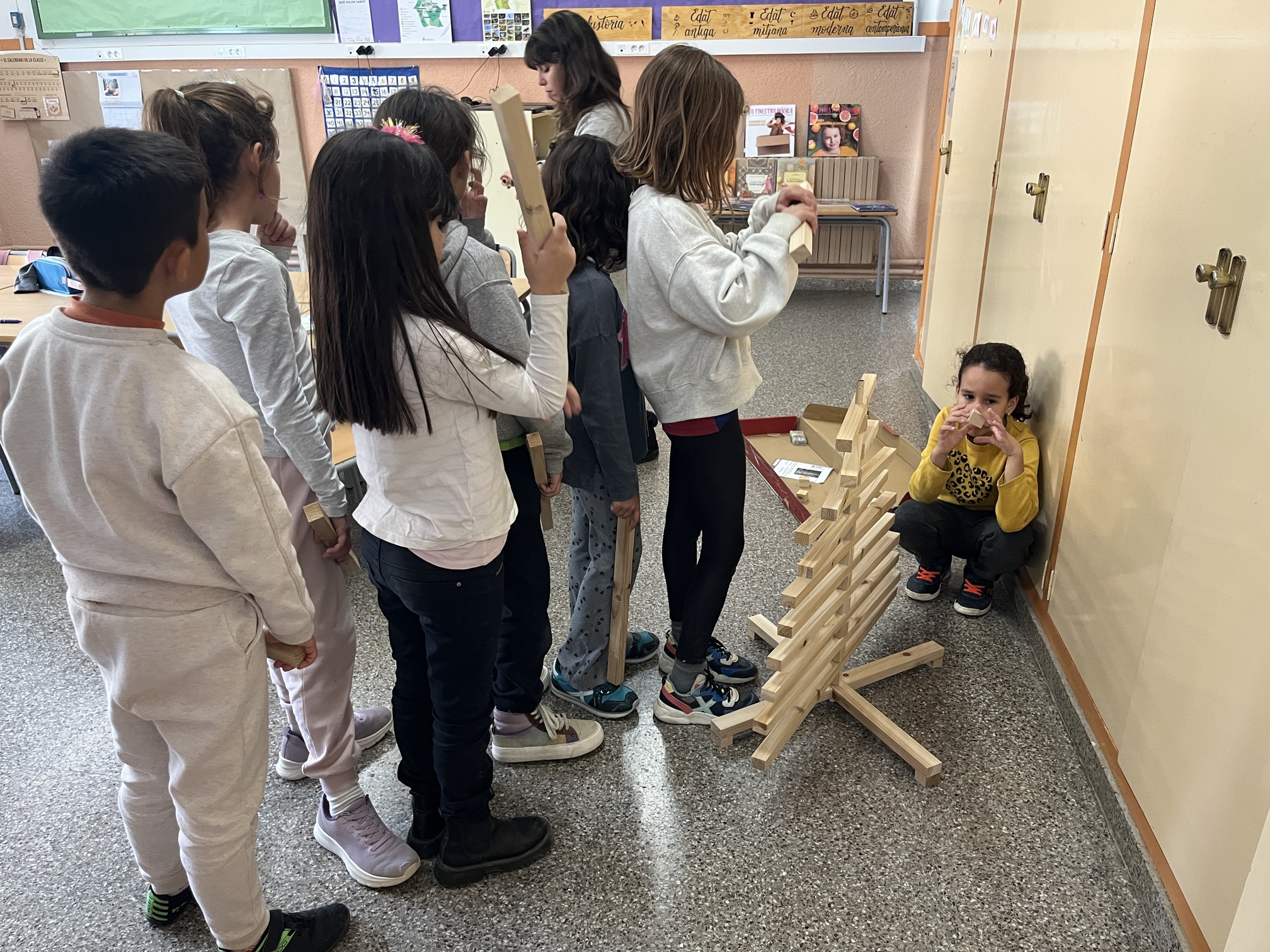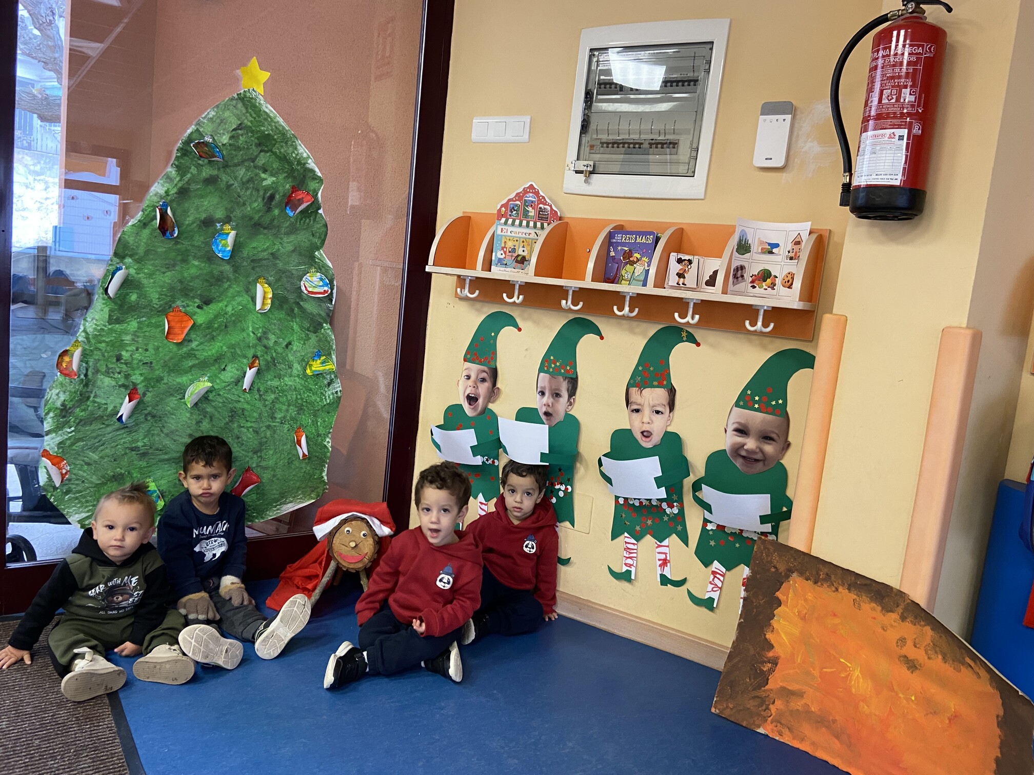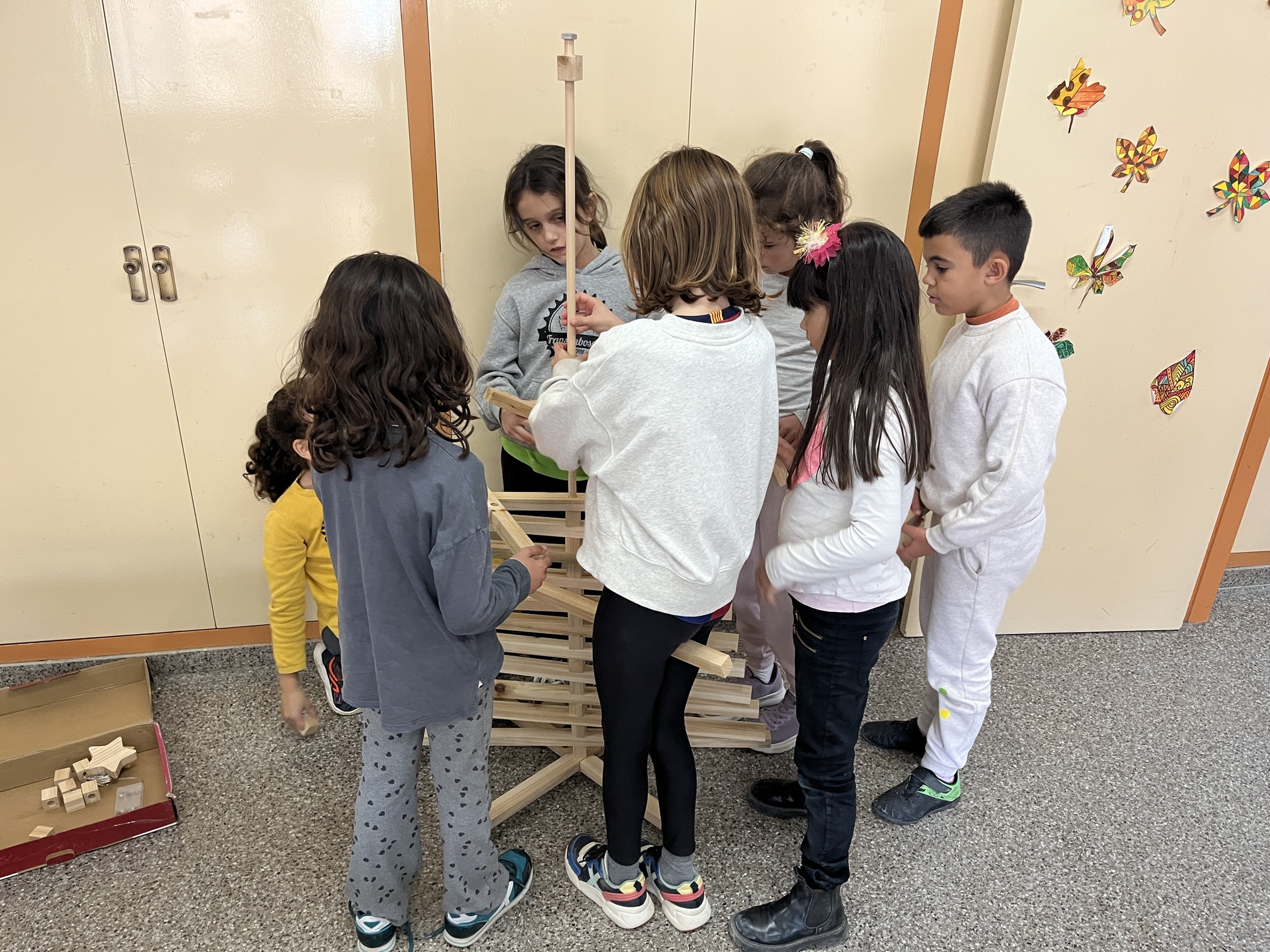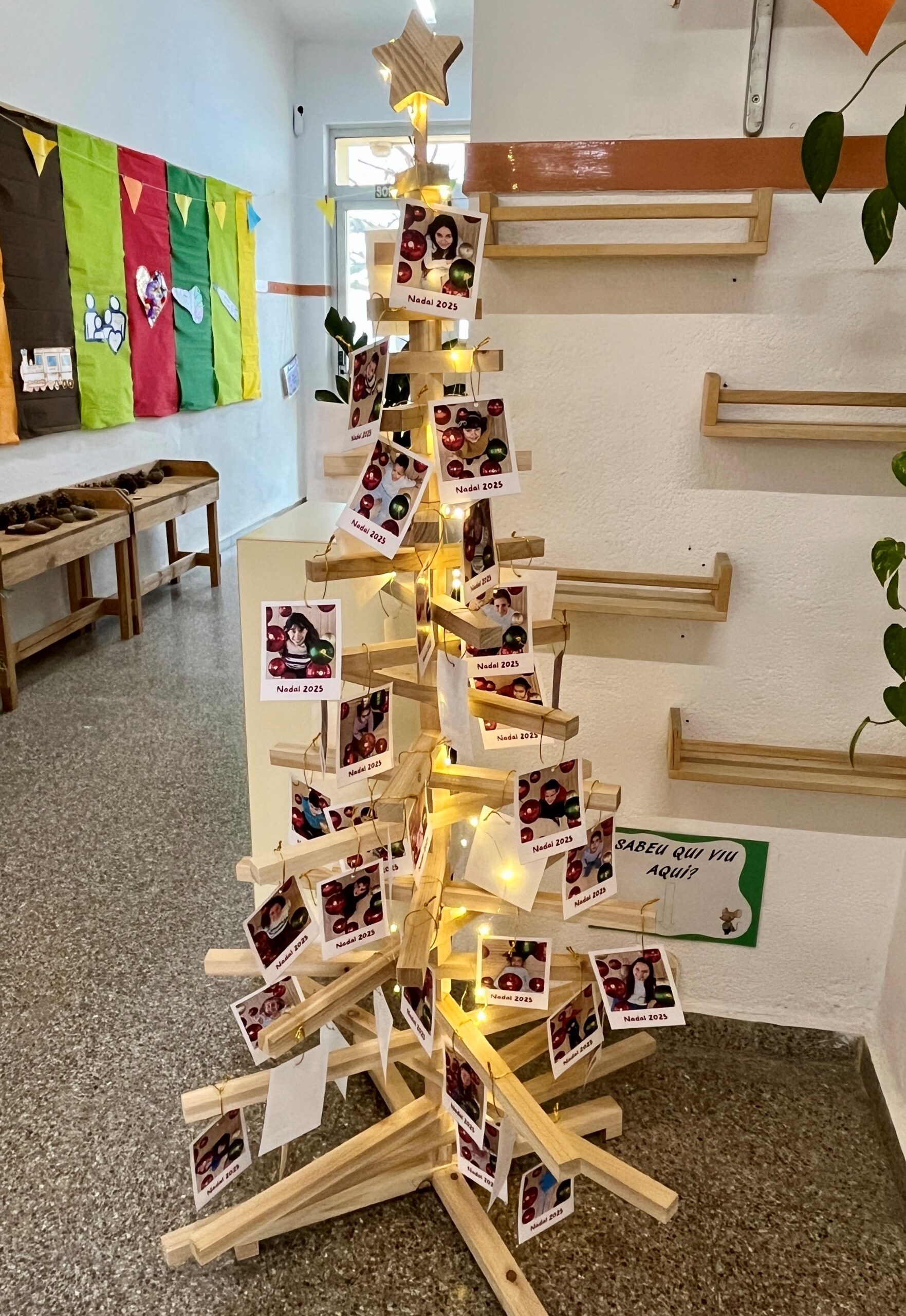 Mentrestant, l’alumnat de la Comunitat de Mitjans 2 (3r) va muntar l’arbre de Nadal de fusta de l’escola, on després tot l’alumnat va penjar la seva foto nadalenca per decorar-lo.