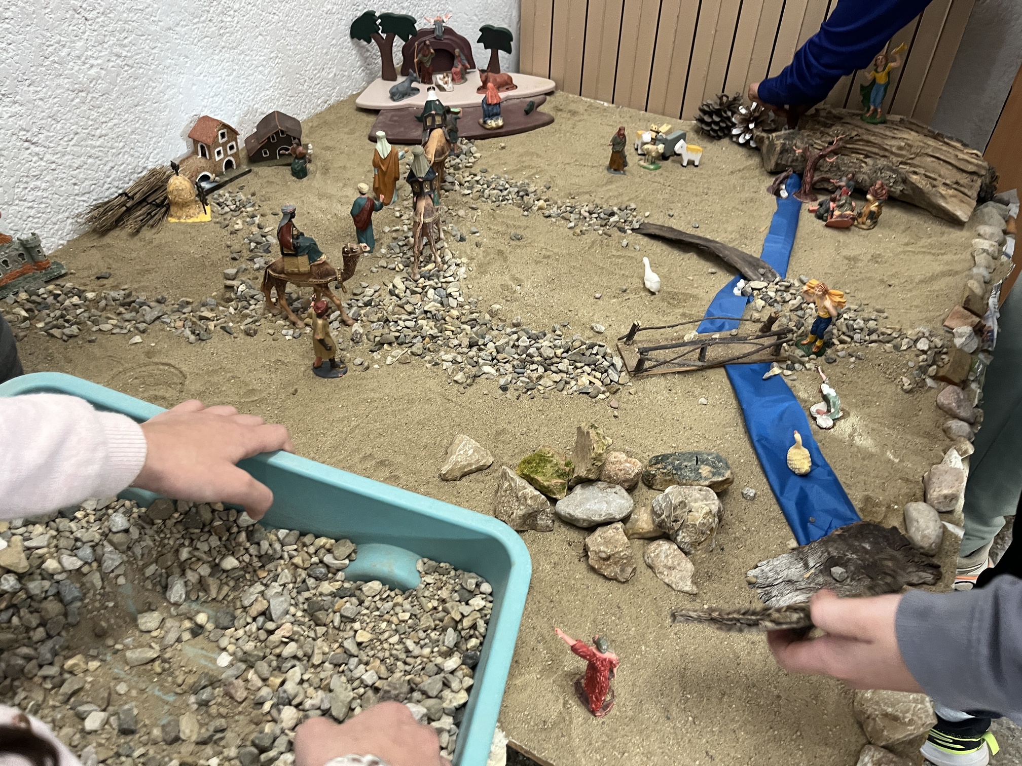 D’altra banda, l’alumnat de la Comunitat de Grans va anar a buscar sorra i pedres i van muntar el pessebre amb totes les figuretes corresponents, inclòs el divertit caganer!