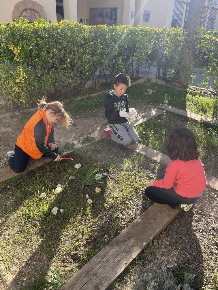 Durant aquest mes de febrer i març, l’alumnat de les Comunitats de Petits i Mitjans hem treballat de valent a l’hort de la nostra escola.