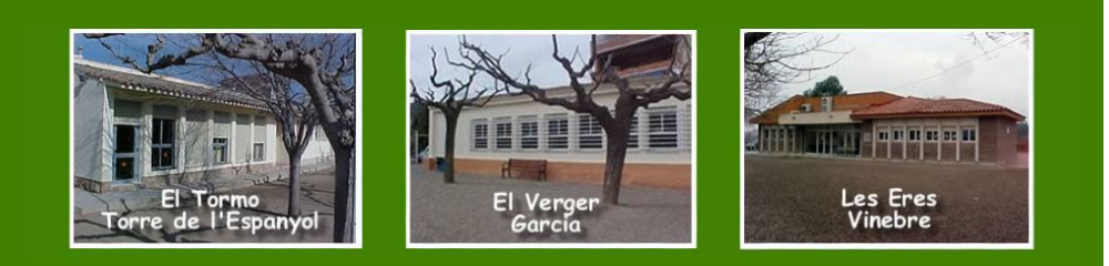 La nostra ZER està formada per la unió de tres escoles rurals : L’escola El Tormo de La Torre de l’Espanyol, l’Escola Les Eres de Vinebre i l’Escola El Verger de Garcia. Som tres centres d’Educació Infantil i Primària situats en tres poblacions molts properes de la comarca de la Ribera d’Ebre i als quals ens uneix la nostra proximitat al riu Ebre.