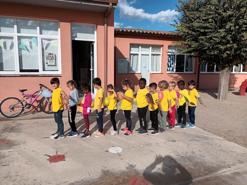 Ahir a l’aula de Cicle Inicial es va plantejar un repte que havíem de resoldre conjuntament. Havíem d’aconseguir fer una volta al pati amb un globus que no podíem aguantar amb les mans.
