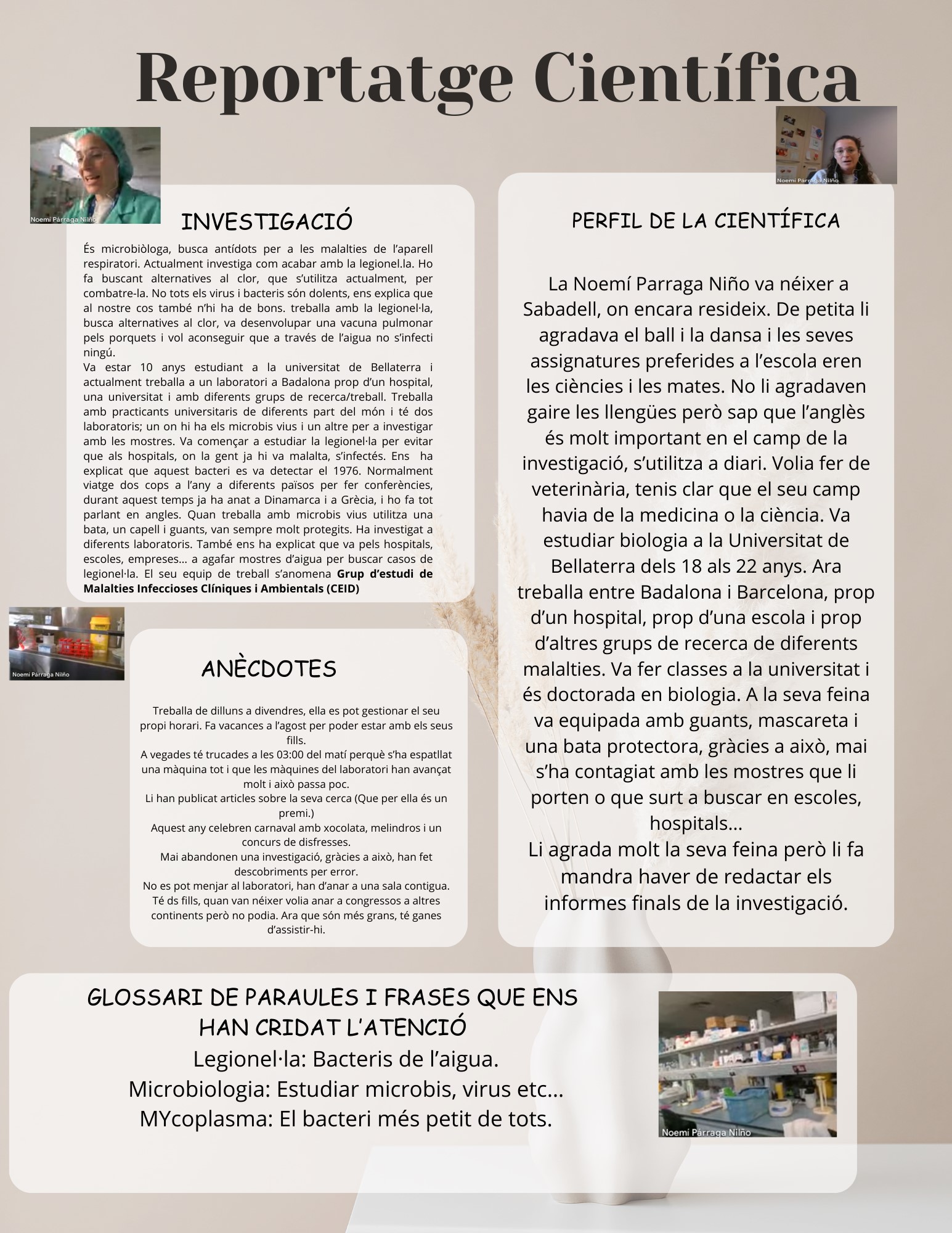Aquest cop la científica no va poder venir presencialment i la xerrada va ser virtual. Per altra banda, això va permetre que la Noemí ens fes una visita pel laboratori de l’Institut on treballa. va ser molt interessant.
